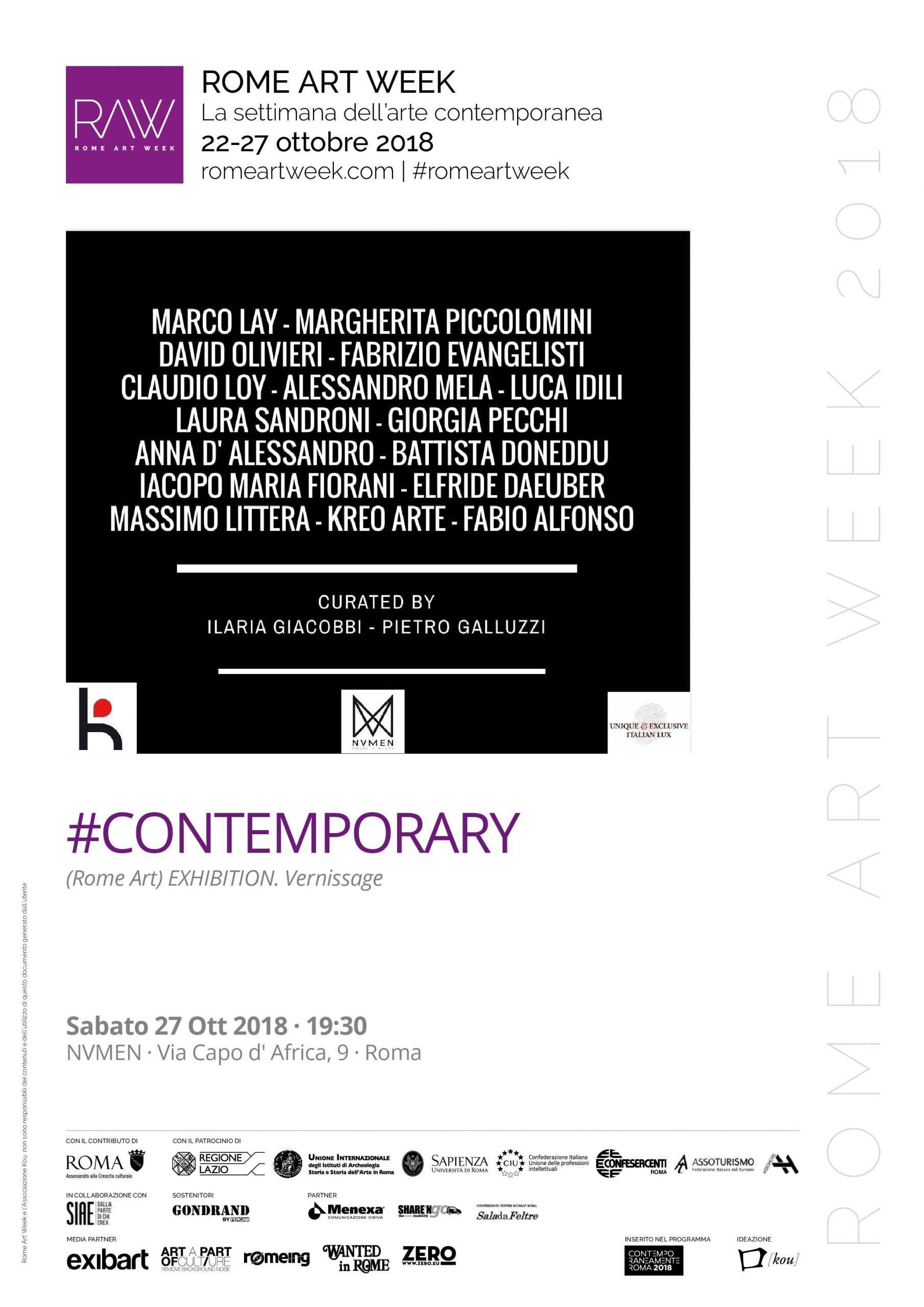 Ilaria Giacobbi, storico dell’ Arte romano selezionata e accreditata tra i ventinove curatori del Rome Art Week, presenta in collaborazione con Pietro Galluzzi #CONTEMPORARY, alla NVMEN ART GALLERY di Roma.