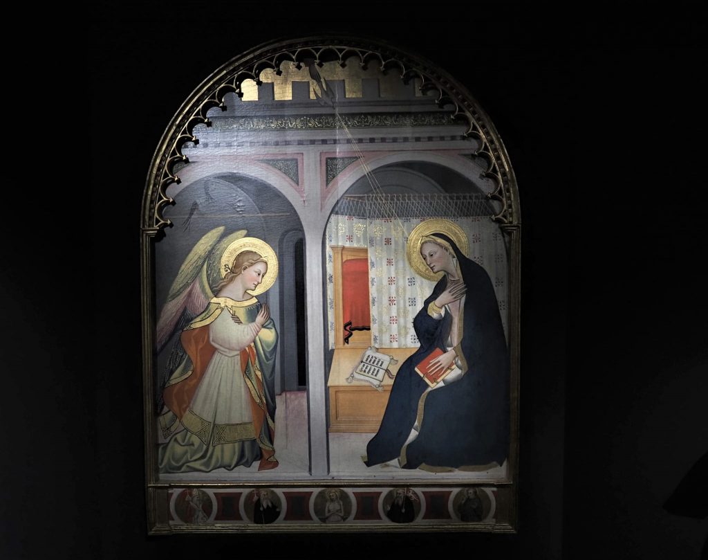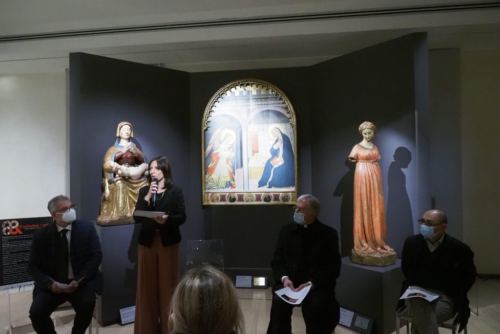 Custodire l’arte. E’ questo il forte legame che collega la Valnerina a Perugia attraverso il nuovo progetto espositivo inaugurato oggi a Palazzo Baldeschi. Tra le tante salvate nelle chiese, nei musei e nei palazzi danneggiati in seguito al terremoto del 2016, sono tre le opere d’arte che da oggi hanno trovato una “nuova casa” nelle sale del museo grazie ad un puntuale lavoro di squadra tra la Fondazione Cassa di Risparmio di Perugia con la sua strumentale Fondazione CariPerugia Arte, la Galleria Nazionale dell’Umbria, l’Archidiocesi di Spoleto-Norcia e il Comune di Norcia. Si tratta della Madonna adorante il Bambino di uno scultore ignoto dell’Italia centrale, dell’Annunciazione di Giovanni del Biondo e del capolavoro Vergine Annunciata dell’artista senese Jacopo della Quercia, provenienti rispettivamente dalla chiesa di San Michele Arcangelo a Savelli di Norcia, dalla chiesa dell’Annunziata a Poggio di Croce di Preci e dal Museo della Castellina di Norcia.