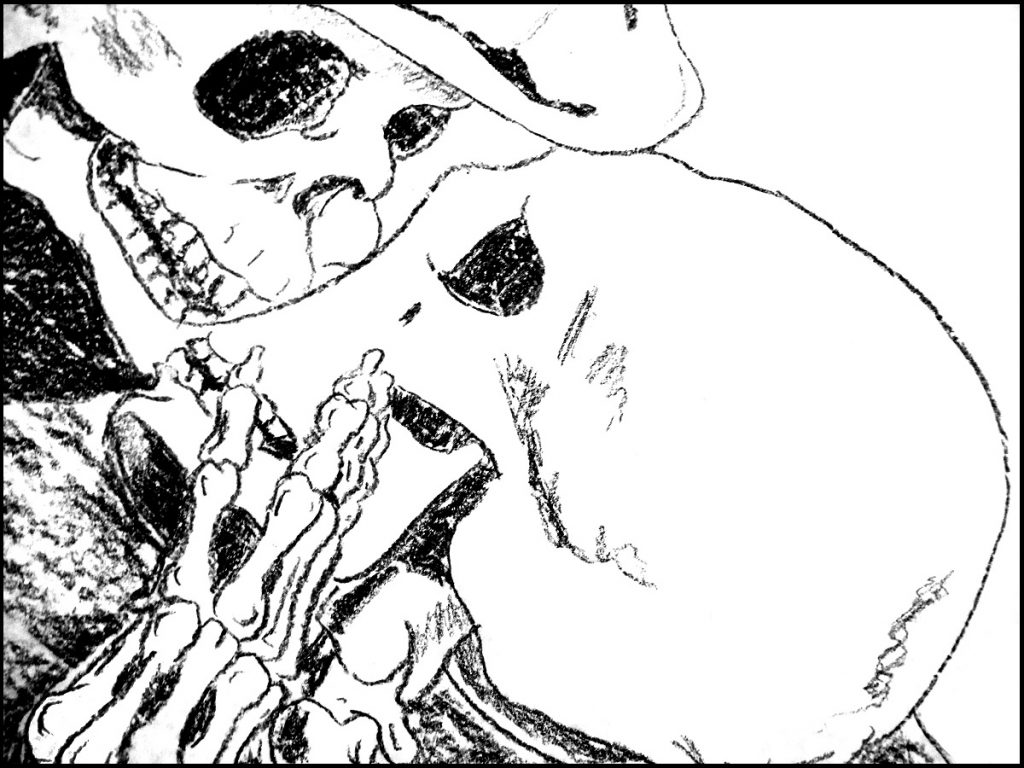 All’interno degli splendidi locali del Garum, Biblioteca e Museo della Cucina e del Boscolo Circo Massimo, la sera e la notte di Halloween e, ancor di più, il giorno di Ognissanti e quello dei Morti saranno teatro di una mostra ardita, inedita e squisitamente sui generis: non commerciale, non piacevole nè semplice e della durata di soli tre giorni; impermanente ed apparentemente insensata come la vita e che, come la vita, trova il suo senso nell’essere vissuta. Una mostra che vi farà conoscere l’antica, mistica e misterica, danza macabra di medievale memoria e lo farà attraverso 10 xilografie e 5 matrici xilografiche della serie di danze macabre preparate da Leandro Lottici, esposte insieme ad una serie di XVII grandi disegni a dimensione d’uomo: un ideale fregio continuo di oltre 25 metri, realizzato direttamente in loco, in cui la Morte danza con lo spettatore. Specchi evocativi d’iconografie conosciute, da Dürer e Botticelli a Banksy, volti a destrutturare e ricostruire l’immaginario di chi guarda e di chi, fra questi, dai grandi disegni avrà il coraggio di lasciarsi guardare.
