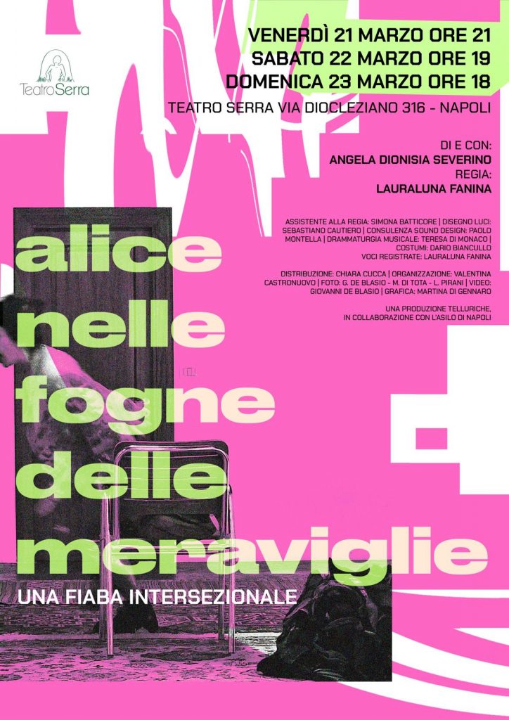 Al Teatro Serra di Napoli debutta “Alice nelle fogne delle Meraviglie” fiaba intersezionale di e con Angela Dionisia Severino. Regia Lauraluna Fanina. Dal 21 al 23 marzo, a Fuorigrotta, in Via Diocleziano 316. Info: teatroserra@gmail.com, 347.8051793