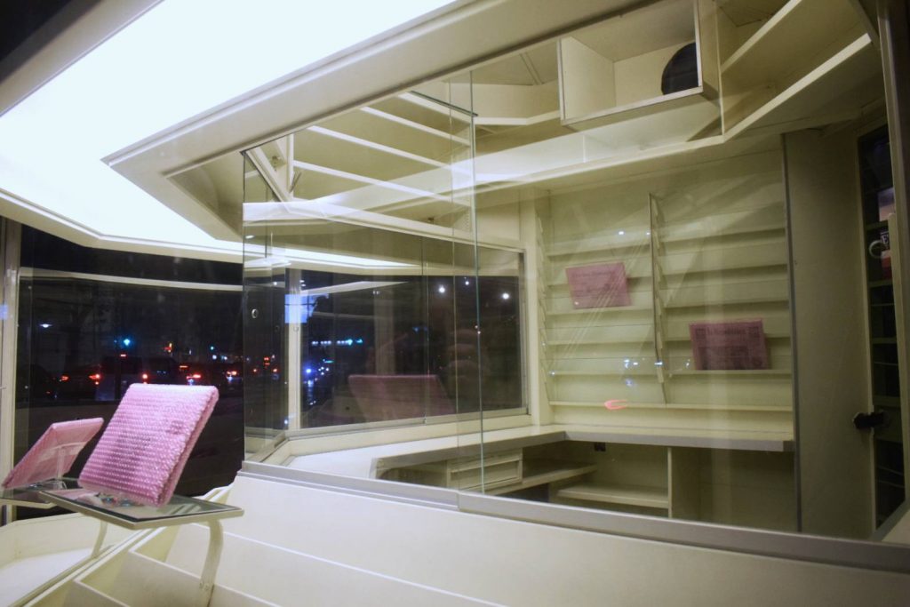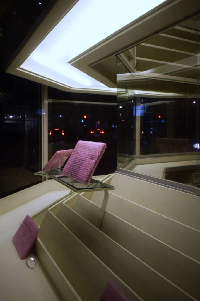 Formatosi in antropologia culturale, Scapinelli concentra la propria ricerca sui processi di mediazione e sulle dinamiche simboliche che condizionano la percezione collettiva. Con Deconstructio et decodificatio, l’artista mette in atto un gesto tanto semplice quanto rivelatore: prelevare quotidiani, manipolarli, ricoprirli con pluriball antistatico rosa e disporli in vetrina come oggetti di design o accessori di moda.