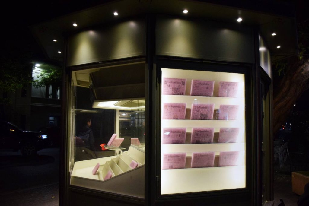 In questa trasformazione, l’edicola si configura come architettura semantica di una crisi: spazio di soglia in cui la notizia diventa immagine e la trasparenza si fa illusione. L’opera di Scapinelli invita così a un esercizio di decodifica lenta, un atto di consapevolezza percettiva che restituisce densità allo sguardo nell’epoca della sovraesposizione mediatica.