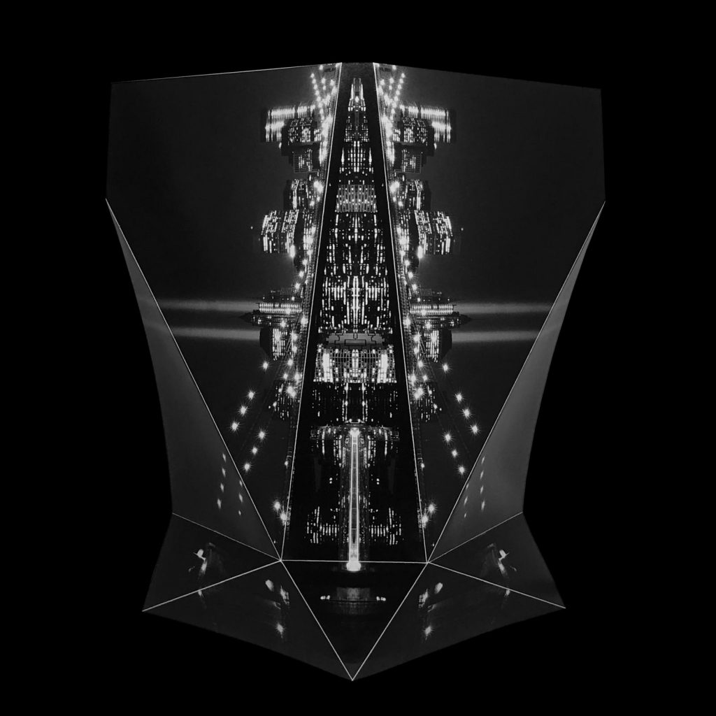 Vi ricordate quando, a scuola, si realizzavano poliedri disegnando con riga e squadra il perimetro e i punti di piegatura su cartoncino colorato? In fondo, detto molto semplicemente, il principio è lo stesso. Tuttavia, qui, il grado di complessità è molto più elevato, sia dal punto di vista tecnico che creativo. Si parte da uno scatto fotografico per approdare ad un’opera metafotografica, perché il risultato è un’opera tridimensionale in cui l’immagine di origine funge da tema figurativo.