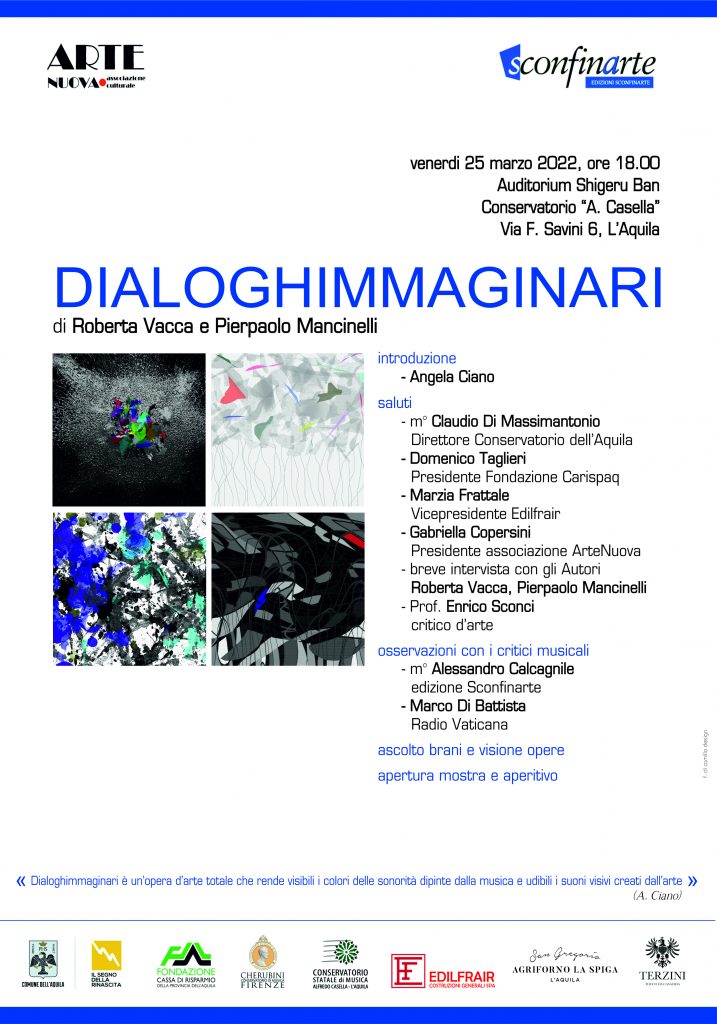 progetto di arte e musica contemporanea “dialoghImmaginari” di Roberta Vacca compositrice e Pierpaolo Mancinelli artista. Si tratta di un’opera “bisensoriale” realizzata dall’Associazione Arte Nuova e dalle edizioni Sconfinarte con il contributo del Comune dell’Aquila della Fondazione Carispaq, di Edilfrair Srl, del Conservatorio “A. Casella” dell’Aquila e del Conservatorio Cherubini di Firenze.