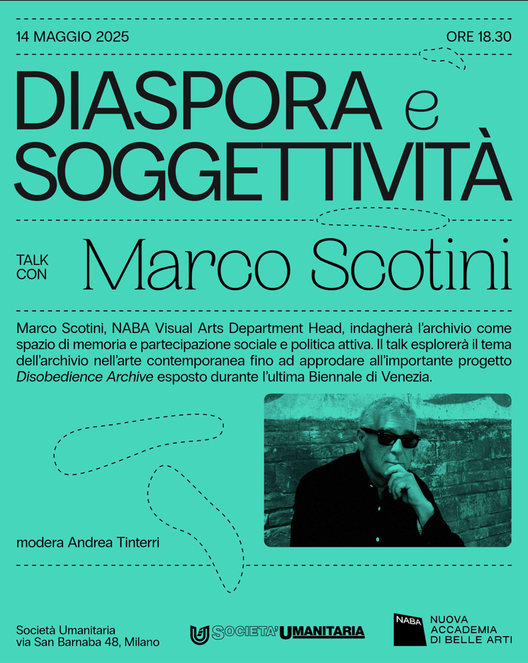 Marco Scotini, Visual Arts Department Head di NABA, Nuova Accademia di Belle Arti indagherà l’archivio come spazio di memoria e partecipazione sociale e politica attiva. Il talk “Diaspora e soggettività”, previsto mercoledì 14 maggio alle ore 18.30 e moderato da Andrea Tinterri, esplorerà il tema dell’archivio nell’arte contemporanea fino ad approdare all’importante progetto Disobedience Archive esposta durante l’ultima Biennale di Venezia.