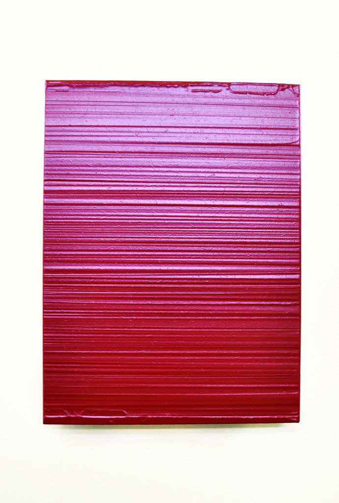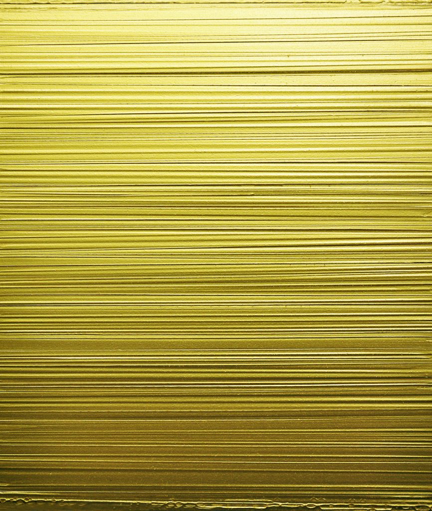La concretezza dell’opera, la presenza e la possibilità di senso sono il risultato di un perfetto equilibrio tra pittura stesa in materiche modulazioni in armonico contrasto con la consistenza dello spessore del supporto il cui volume, nella sua presenza fisica perimetra e definisce la superficie dell’opera, spazio questo ove il lento mutare della luce e le vibrazioni delle scansioni lineari suggeriscono lo scorrere del tempo; nello spazio relativo dell’opera nasce l’intuizione di un tempo mentale, luogo di sintesi tra realtà e immaginazione.