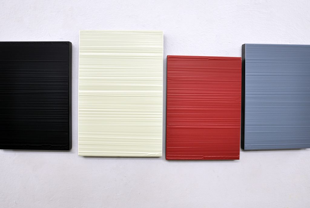 In questa mostra intitolata L’intangibilità del colore, D’Oora espone i più recenti esiti del suo lavoro rigorosamente monocromo.