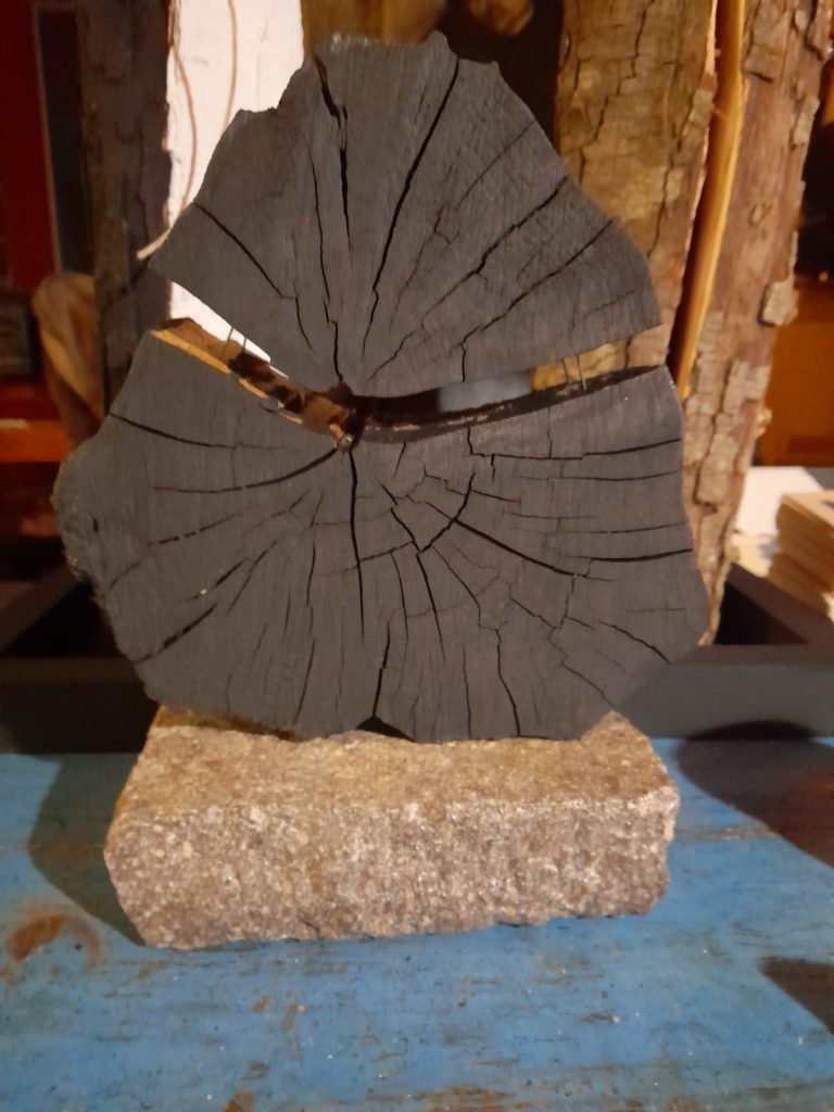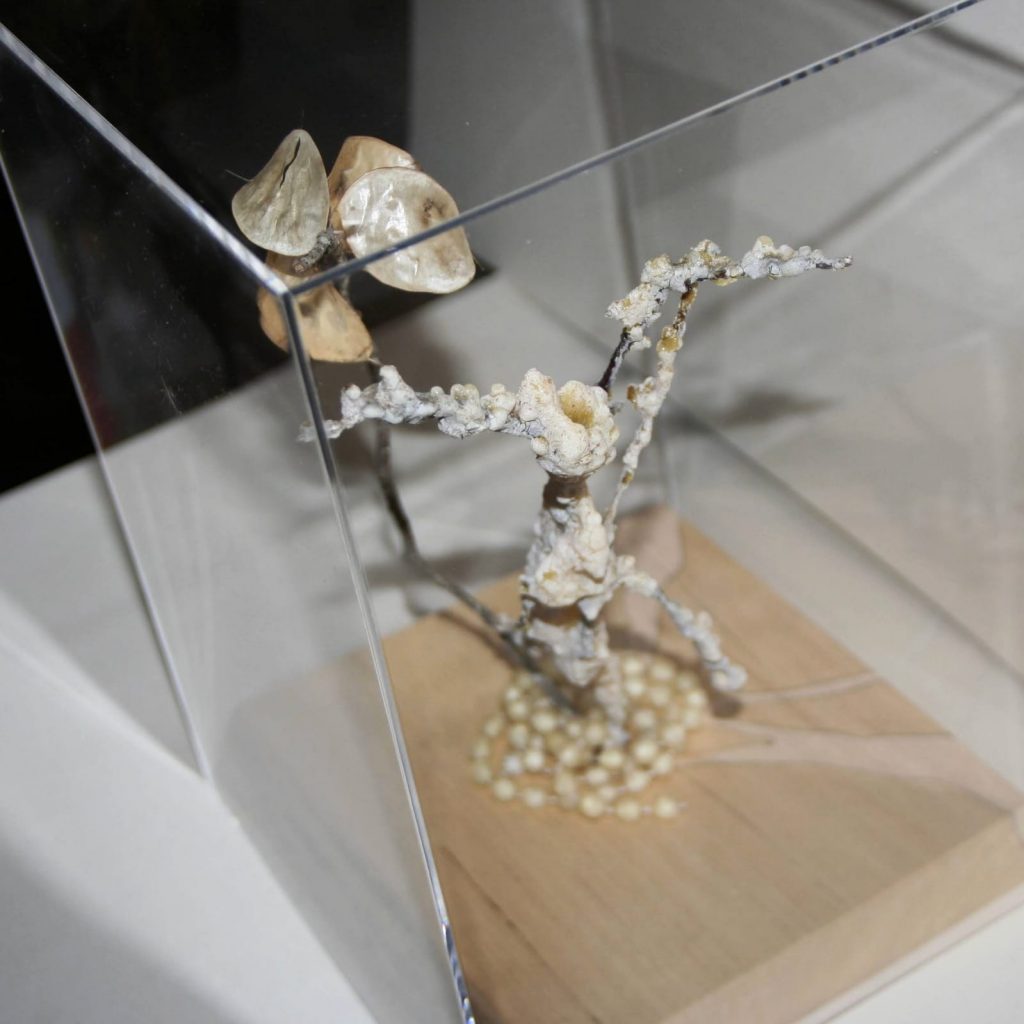 L'esposizione comprende pietre recuperate nei ruscelli vicino alla sua abitazione di Parlascio, da Piccaluga rivisitate, prendendo spunto dalle "Metamorfosi di Ovidio", parti di rami su cui l'artista ha inserito parole sui suoi sentimenti nei confronti degli alberi, e sempre di alberi, impronte su carta e cucite su tela.