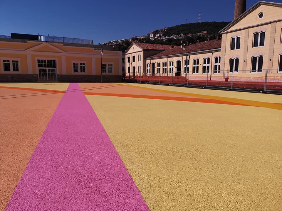 Echo surrounding, è l’intervento di ‘environmental painting’ realizzato dall’artista Elisa Vladilo su circa 1550 mq di manto stradale come parte integrante dei lavori di riqualificazione che stanno interessando gli spazi pubblici dell’area del Polo Museale del Porto Vecchio.