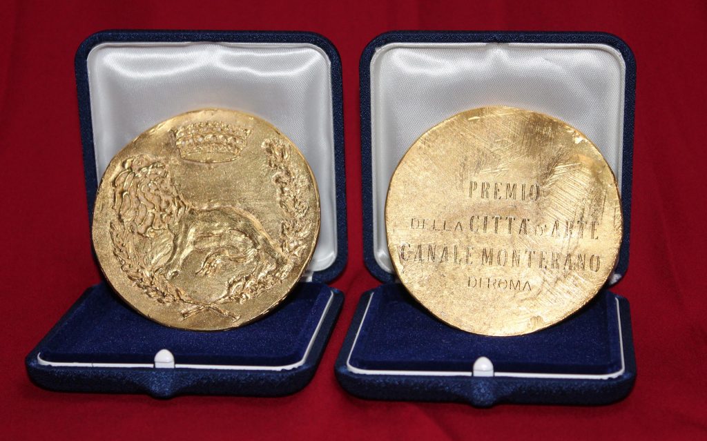 La cerimonia conferisce ad opera del sindaco la medaglia del Leone Aureo, simbolo della città, realizzata con fusione artigianale del laboratorio orafo Rocchi di Via Margutta 51 in Roma, il Diploma del Comune, della Contrada e dell’Accademia, in Convenzione formativa con l’Università degli Studi di Roma Tre, con il Patrocinio della Regione Lazio e di Roma Capitale e la Critica in semiotica estetica della presidente dell’Accademia prof.ssa Fulvia Minetti è esposta in connubio di valorizzazione della litografia in opera unica dell’artista.