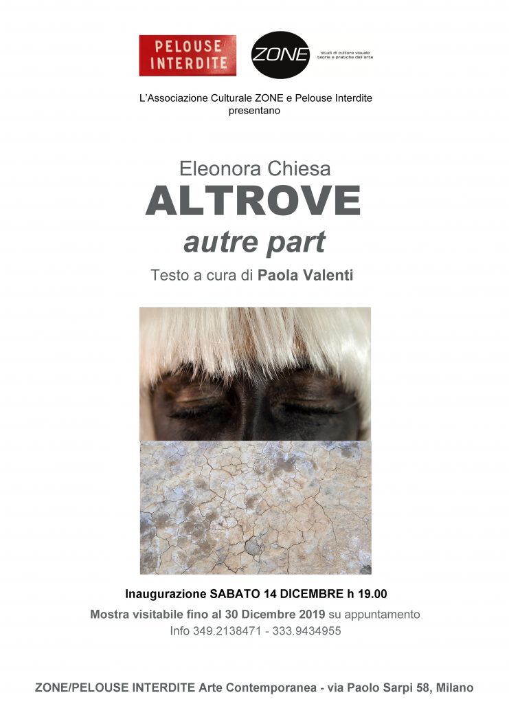 Sabato 14 Dicembre 2019 dalle 19.00, ZONE/PELOUSE INTERDITE presenta Altrove, evento personale di Eleonora Chiesa con testo di Paola Valenti. La mostra, una stanza immersiva, ospita due progetti video/performativi :The Journey (USA 2019), NERD – Nothing Ever Really Dies (Italia 2018)