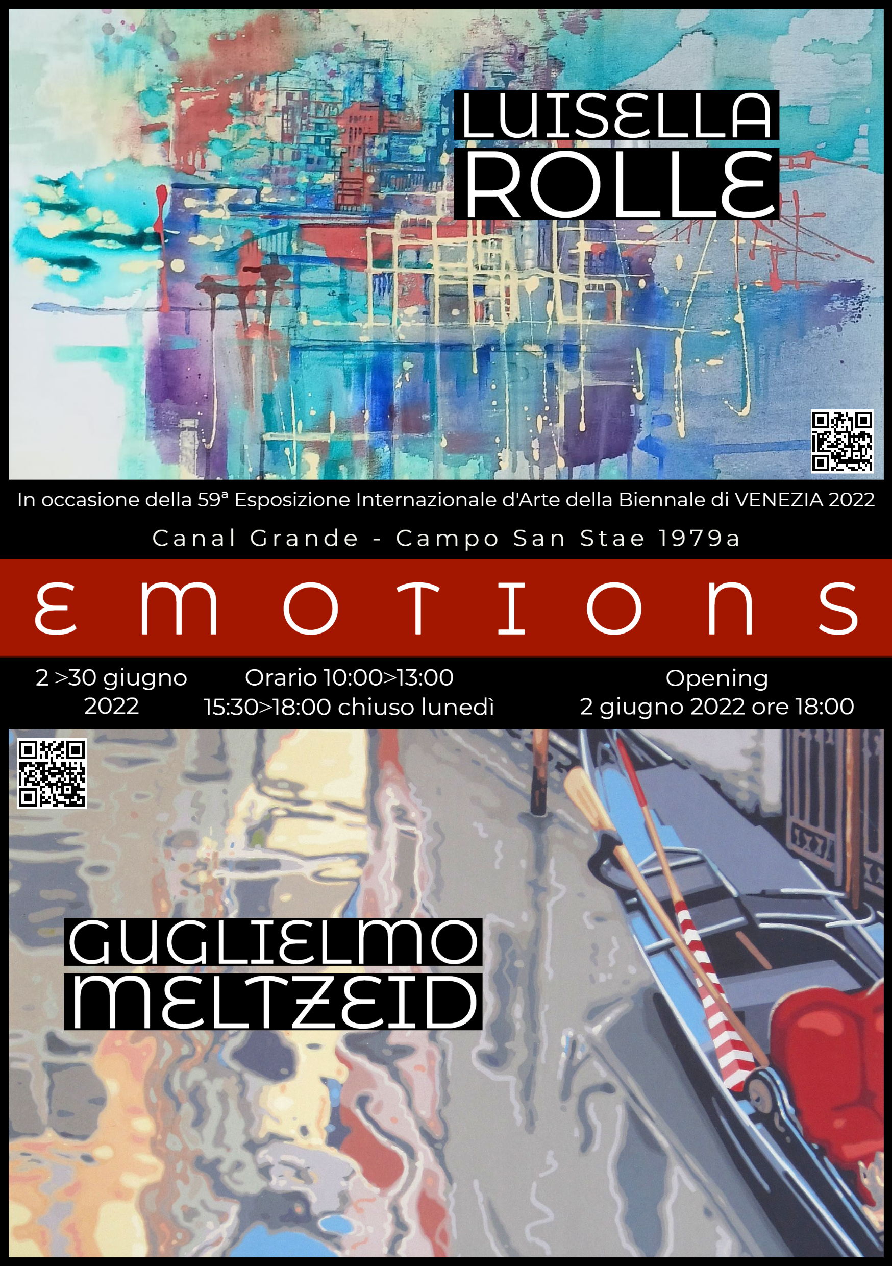 L’ originalità di questa mostra sta nell’essere una “personale” a due voci. Due artisti la cui diversa espressività è coniugata da un delicato ed intenso mondo interiore. Luisella Rolle e Guglielmo Meltzeid trasmettono emozioni, istanti che rimangono come segni del presente e che parlano all’osservatore come sussurri di tenui ritratti e paesaggi urbani, apologie dell'umano sentire che ognuno interpreta in dote della propria cultura e della interiore bellezza.