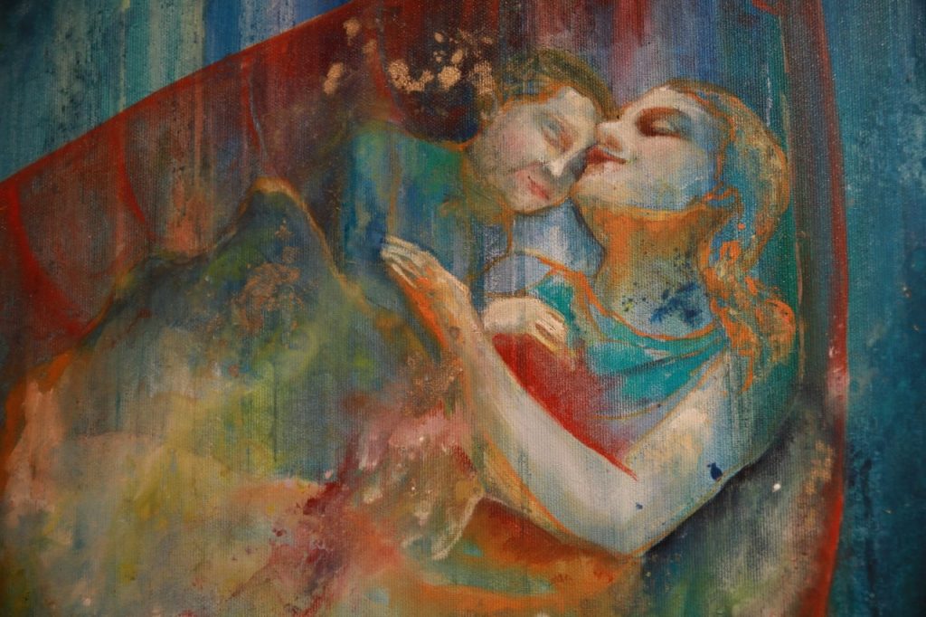Vivian, artista con un profondo legame con il Brasile, terra che l’ha ospitata per lunghi anni e che irrompe nelle sue coloratissime tele con la tradizionale dicotomia saudade/allegria, qui interpreta la maternità come culla di inclusione e certezza di accoglienza, conquistata serenità dopo la tempesta emotiva che segue ad eventi imprevedibili, che sempre mettono alla prova l’essere umano, e l’incertezza della vita futura.