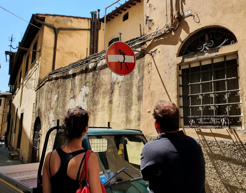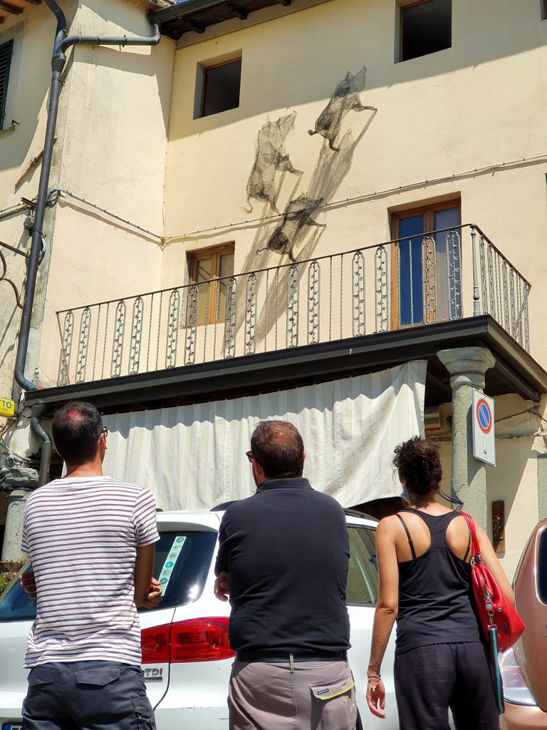 Una mostra diffusa dove animali di terra e di mare fatti in ferro e plastica riciclata, sculture, abiti riusati, cartelli stradali rielaborati, parole chiave proiettate sulle facciate degli edifici rappresentano la necessità di recuperare molti valori etici persi dall’essere umano. Le installazioni presenti vogliono essere anche un messaggio sociale che si fonda su quell’essere con…, che permette la convivenza civile e il rispetto tra forme di vita differenti.
