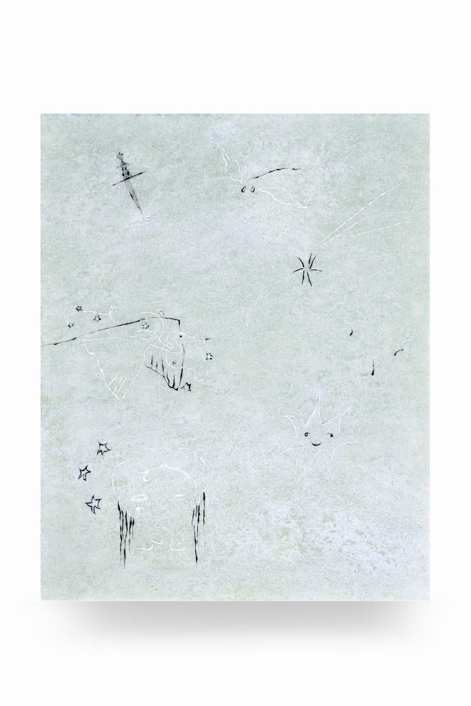 Le opere esposte, realizzate su tela e plexiglass, si distinguono per la loro leggerezza e trasparenza, evocando la fragilità del paesaggio naturale e la sua resistenza poetica. Il verde, colore ricorrente e radicante, diventa il filo conduttore di un racconto che intreccia botanica, animali immaginari e cosmologie personali. Farfalle, uccelli, fiori e sentieri si muovono in spazi sospesi, dove la natura non è solo soggetto, ma protagonista mitica e spirituale.
