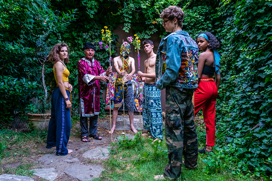 La serie di fotografie racchiuse sotto il nome di "The Way of the Shaman", La via dello Sciamano, realizzate per Felipe Cardeña Project da Stefania Spadoni in occasione della seconda edizione dell’Alzheimer Fest, è un’ulteriore tappa nel percorso creativo e di crescita della Felipe Cardeña Crew, che, come in altre occasioni, rovescia il punto di vista sul mondo: la persona colpita da Alzheimer, considerata dalla società un malato da tollerare, da aiutare o al limite da compatire, viene invece assurto, nella concezione “tribale” della crew, al ruolo di “Capo tribù” di un gruppo che ha per l’appunto fatto dell’immaginazione, dell’inconoscibile oltre che della potenza e della vastità della propria visione interiore (punti nevralgici della malattia degenerativa) il proprio punto di forza e la chiave di riferimento del mondo. Ecco allora che gli anziani pazienti, acconciati per l’occasione con le stoffe e i vestiti autoprodotti e ideati dai ragazzi della crew (confezionati a mano e fortemente debitori di un’estetica di tipo guerrigliero-hippy), vengono così ad assumere, nella finzione fotografica, il ruolo di Grandi vecchi, di “Capi indiani”, se non addirittura di sciamani o guaritori, capaci, proprio tramite la loro malattia, di relazionarsi con le forze della natura e con le energie sottili del cosmo, ormai divenute fatalmente invisibili agli uomini “civilizzati”. E trovando così un’inaspettata consonanza e vicinanza di visioni con i ragazzi della crew, che della libertà dell’immaginazione e dell’abbandono della razionalità hanno fatto la loro principale bandiera. A corredo delle “fotografie sciamaniche”, all’Alzheimer Fest di Levico Terme è esposto anche un quadro di Cardeña intitolato “Il Re del Tempo”, incentrato sulla figura mitico-simbolica del celebre dio indiano, rivisitato dall’artista in chiave pop-floreale, considerato da sempre il Signore che custodisce i segreti del Tempo, nei quali presente, passato e futuro si uniscono e si armonizzano. Artista visivo, mimo, performer “trotamundo”, Felipe Cardeña (Balaguer 1979), ha abitato a Cuba e ovunque gli piacesse. Artista “misterioso in stile Banksy”, come l’ha definito il Corriere della Sera, Cardeña dissemina ovunque, con azioni “di disturbo”, le proprie opere in giro per il mondo. Ha partecipato a tre edizioni della Biennale di Venezia come artista “apolide” invitato in tre differenti padiglioni nazionali (2011, 2013 e 2015).