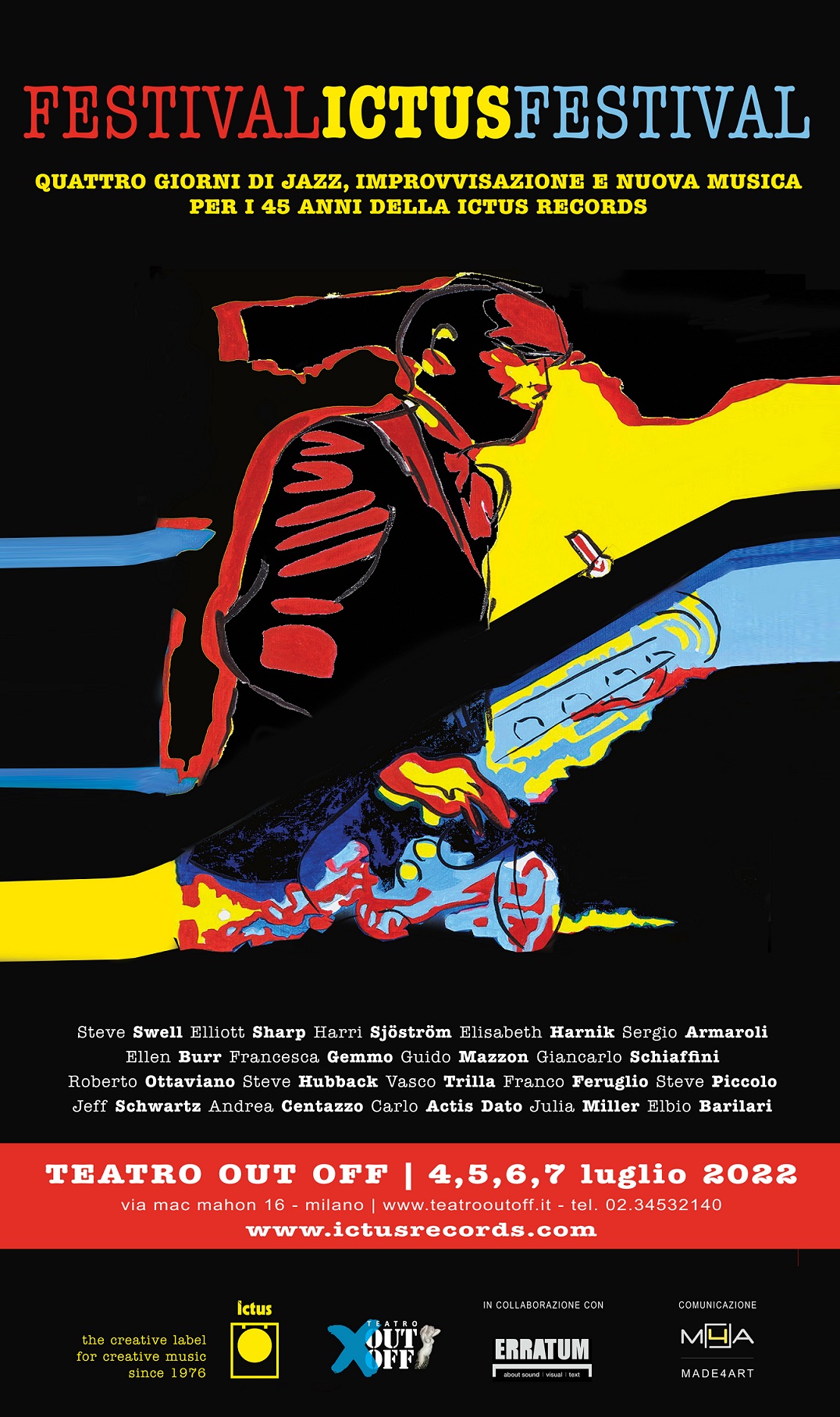 Al Teatro Out Off di Milano un festival di quattro giorni di jazz, improvvisazione e nuova musica con venti musicisti internazionali per celebrare i 45 anni della Ictus Records e i 50 anni di attività professionale di Andrea Centazzo; un progetto Ictus Records in collaborazione con ERRATUM e con la comunicazione a cura di MADE4ART.