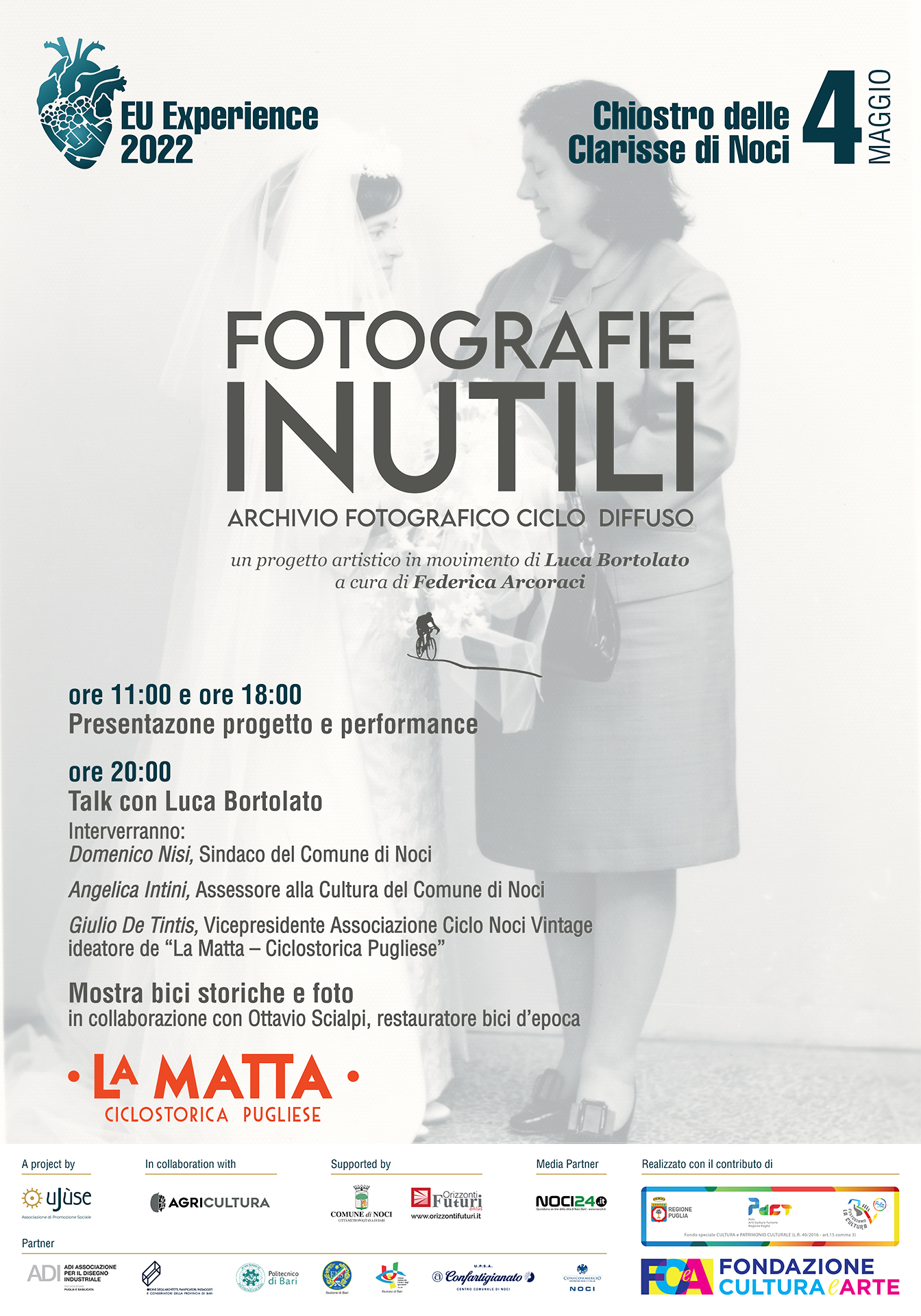 Progetto artistico di Luca Bortolato, a cura di Federica Arcoraci, che attraverserà tutta l’Italia su una bici d’epoca per poter dar nuovo valore a vecchie foto dimenticate provenienti da album di famiglia.