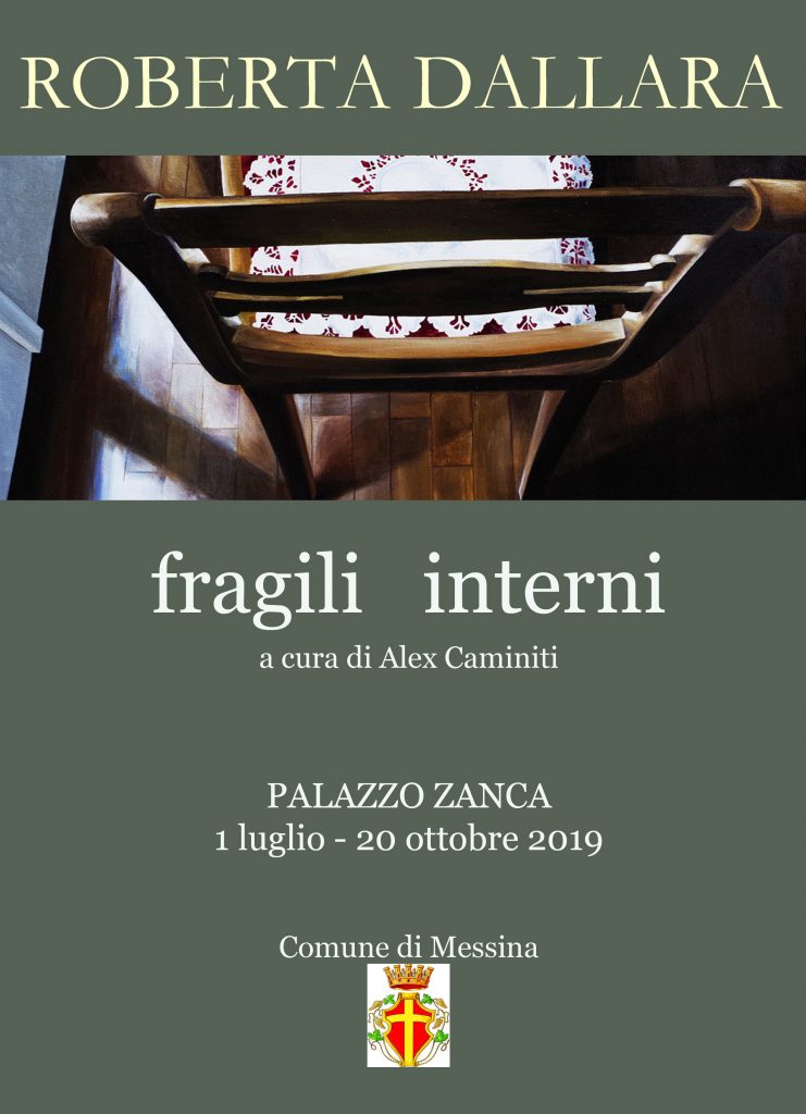 Palazzo Zanca, sede del Municipio della città di Messina, si tinge ancora una volta di rosa con “Fragili Interni” la mostra di Roberta Dallara a cura di Alex Caminiti che sarà inaugurata il primo luglio alla presenza dell' assessore allo Spettacolo e Tempo Libero Giuseppe Scattareggia e dell'assessore alla Cultura Roberto Vincenzo Trimarchi.