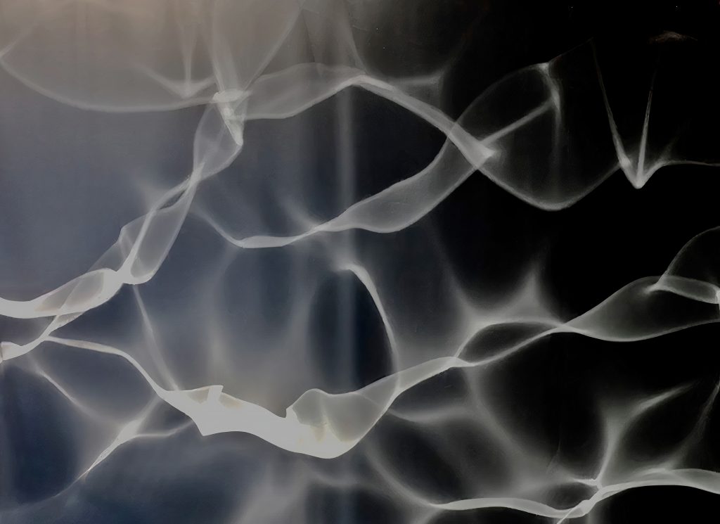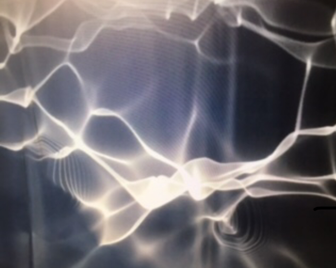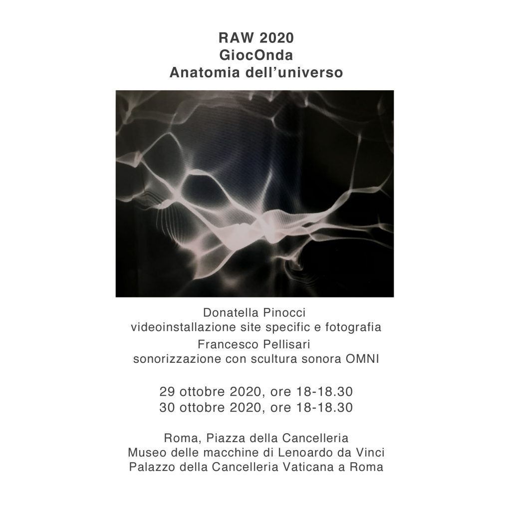 Nel Video Onde d’acqua in movimento provenienti dalle fontane barocche del centro di Roma, vengono trasformate in onde di luce attraverso una video-proiezione sonorizzata nella sala medioevale. La vasca diventa specchio di riflessione alle onde luminose proiettate nella sala. Si genera così un corto circuito visivo dovuto al contrasto tra l’acqua quasi ferma della falda e quello che appare come un “suo” riflesso ma in movimento della acqua che alimenta le fontane del centro di Roma. Si genera una visione surreale analoga ad un’ombra che non segue il corpo che la produce accompagnata da un suono di acqua corrente, sonar, voci ed il famoso e fastidioso Picchio conosciuto durante la Guerra Fredda (Radio Onde Corte) una panoramica della storia dell’uomo che accompagna il video. Nel corridoio che precede la sala è posizionata una foto (frame del video) che anticipa la visione della sala medioevale ed un display con il video in loop .