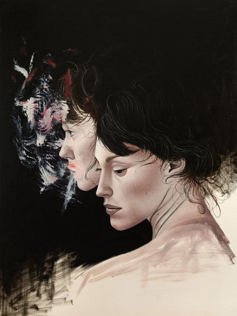 Geminare (duplicare, raddoppiare), raccoglie un corpus di opere frutto degli ultimi due anni di ricerca pittorica del giovane artista sul tema del “doppio”.