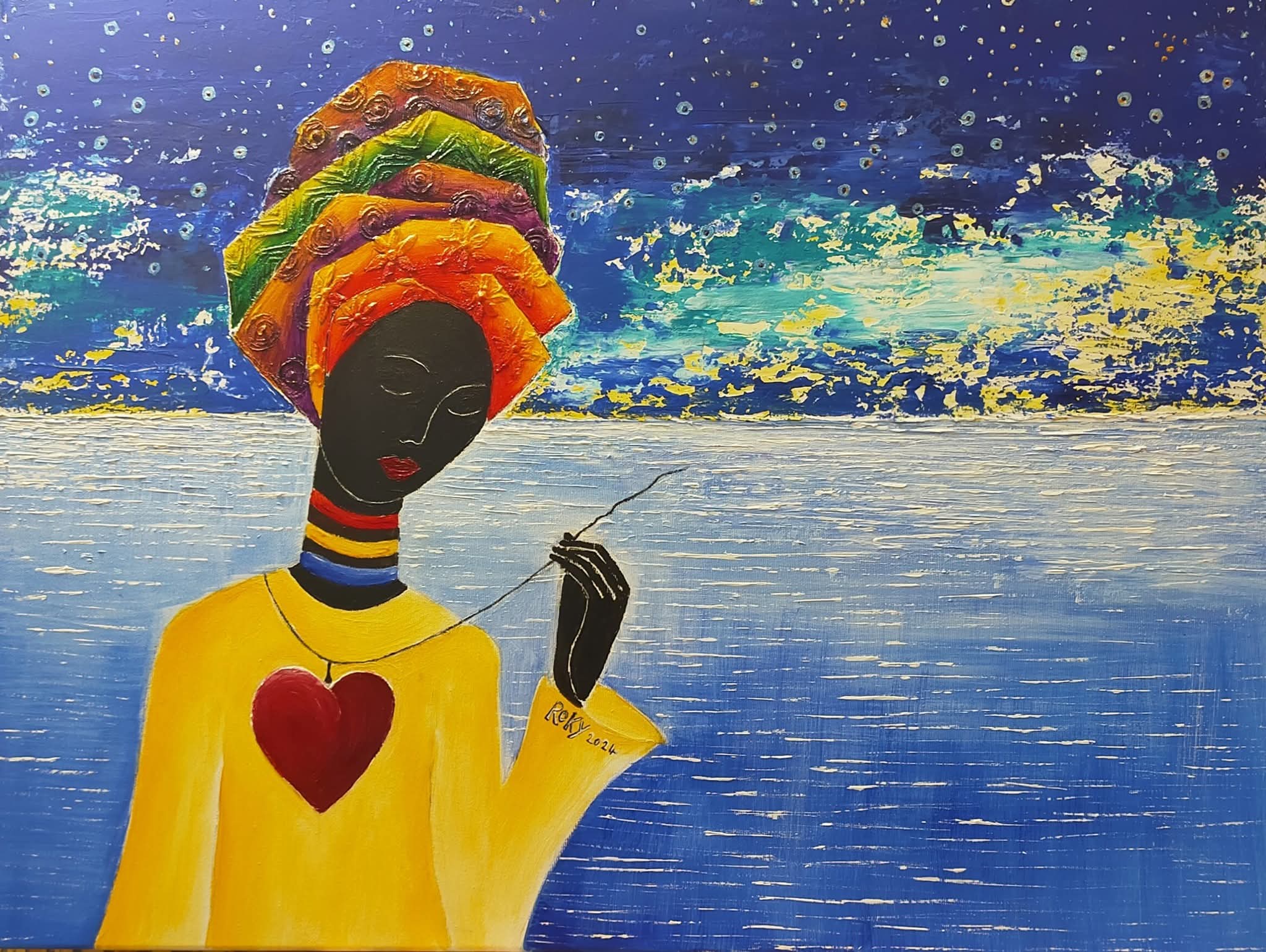 La copertina del libro è un’opera di Rocchina Marchese in arte Roky, dal titolo “Butterò questo cuore tra le stelle”, dedicata alla donna.