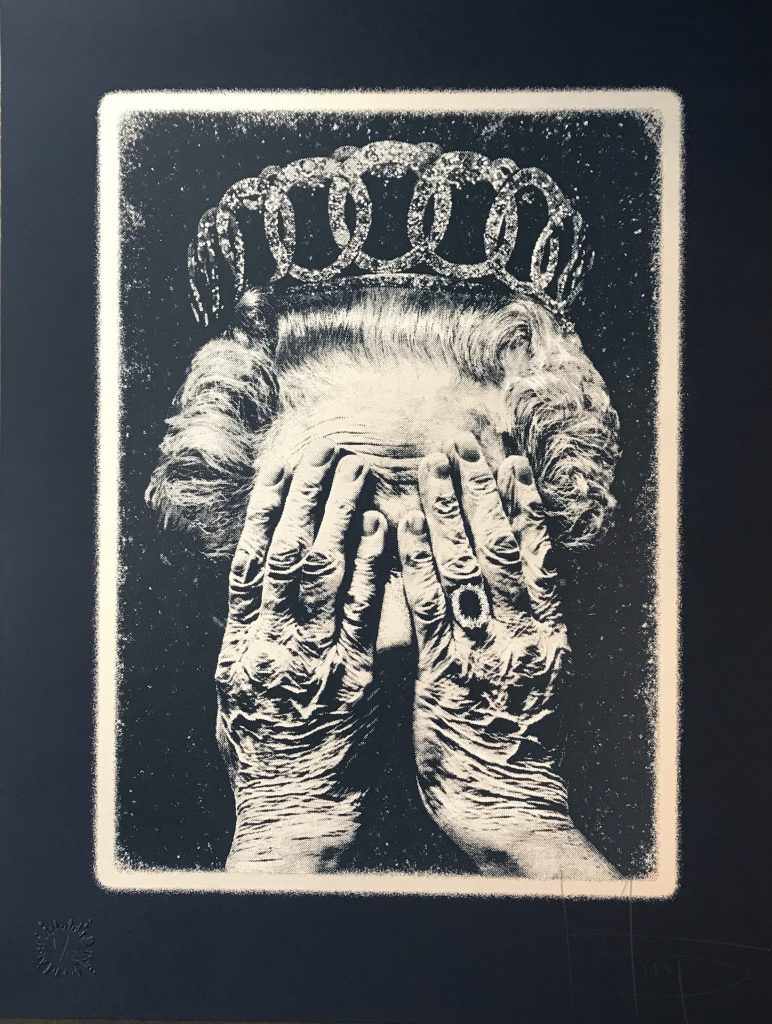 Ha le mani a coprire gli occhi la “Cruel Britannia” di K-Guy, come a non voler vedere cosa accade nel mondo o a non voler accettare il cambiamento dei tempi. K-Guy che da anni ha conquistato i media per il suo stile sarcastico e non convenzionale punta l’accento sulle ombre che da sempre accompagnano la figura della monarca, probabilmente riferendosi anche al complicato rapporto della sovrana con i cittadini del Commowealth delle ex colonie. La “Cruel Britannia” è presentata in tre differenti versioni: in Blu, Silver and Holographic. Le opere di K-Guy sono state esposte in tutto il mondo e adornano le pareti delle case di celebri rockstar internazionali.
