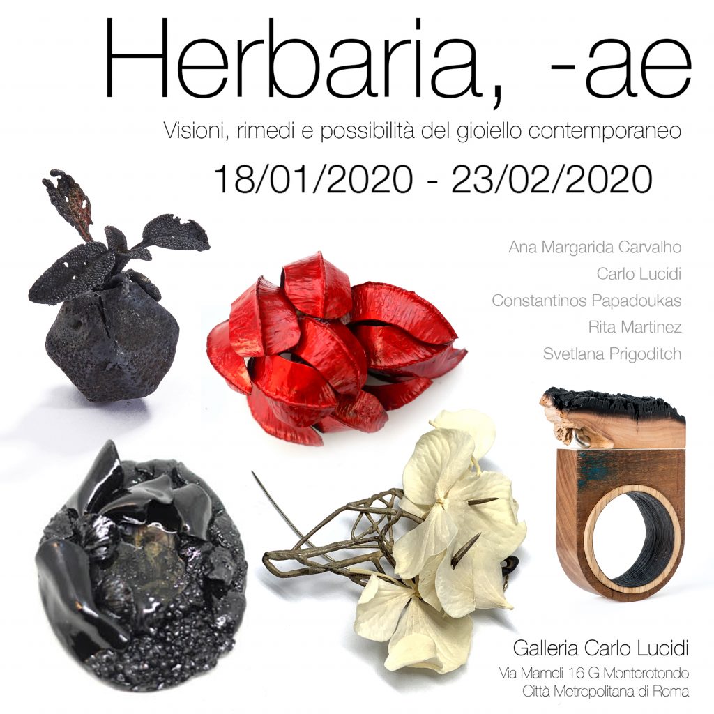Il 18 Gennaio alle ore 17:30 inaugura a Monterotondo, nella città metropolitana di Roma, in Via Mameli 16 G, la Galleria Carlo Lucidi, specializzata sul Gioiello d’Arte, con una mostra dal titolo “Herbaria,-ae | Visioni, rimedi e possibilità del gioiello contemporaneo”.