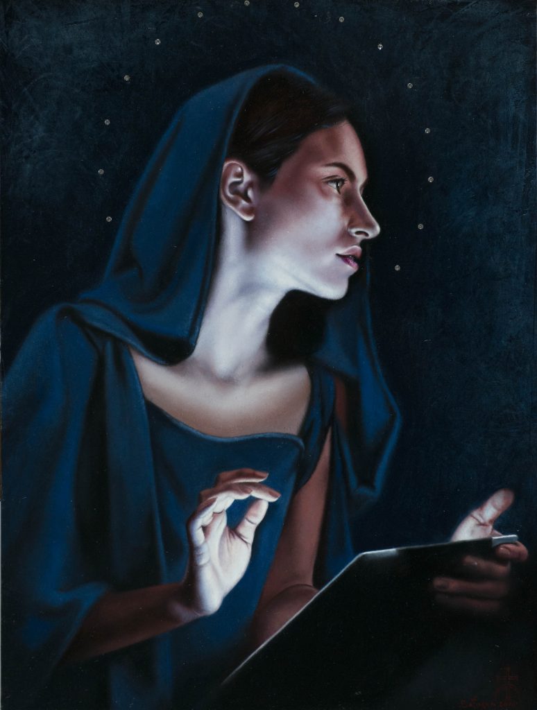 E cos'è la contemplazione se non il guardare con intenso interesse e in maniera assorta? E cosa fa il voyeur se non guardare senza entrare in scena? Partendo dalla scena, quale momento di “scelta” (ci si potrebbe attardare con lo sguardo anche su singole parti del corpo/quadro), con profonda concentrazione sale su su fino ad una cognizione semplice ed affettiva di Dio, o del dato mistico-religioso. E cosa non è la “fissità” della pittura di De Chirico se non meditazione metafisica? Tutto ciò dà un profondo godimento/stordimento divino che ci riporta alla sindrome iniziale. Ed è tutto così concentrato in un'unica sensazione visiva del piacere che ci fa cadere in trance, che conduce all'elevazione dello spirituale sopra ogni modo ordinario di conoscere.