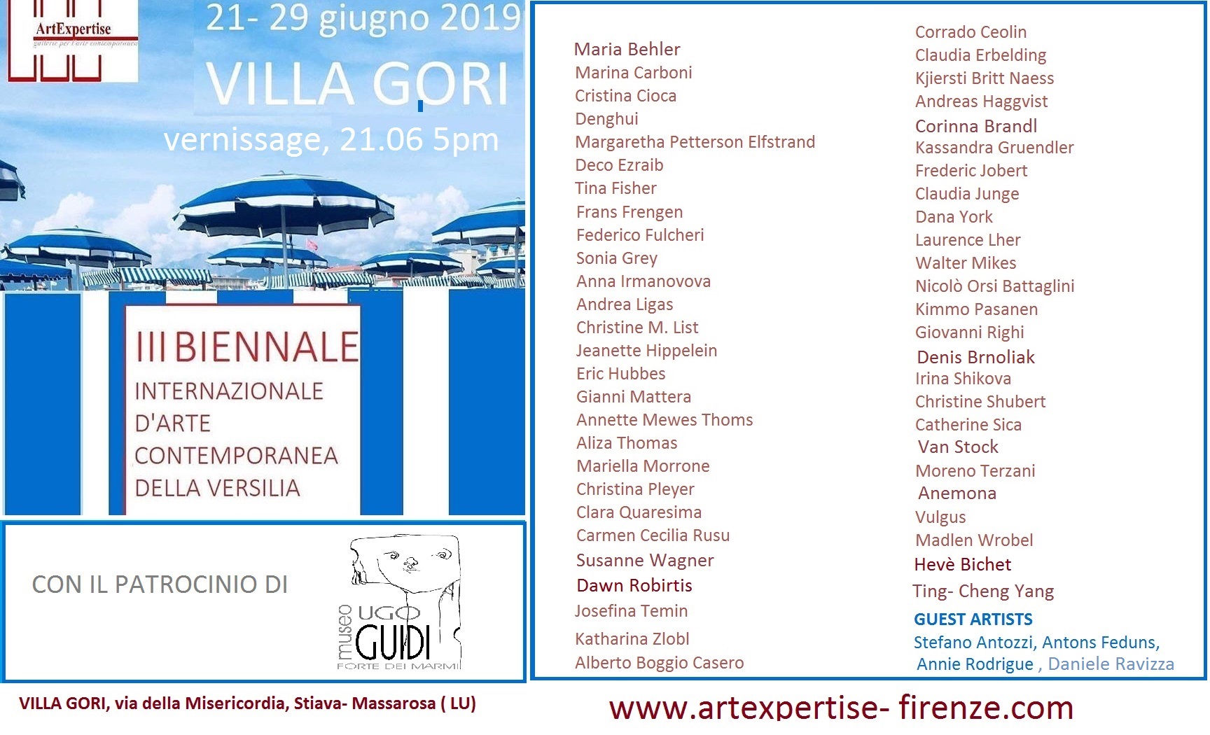 la terza Biennale della Versilia, curata da Artexpertise, sarà presentata nella elegante Villa Gori di Stiava.