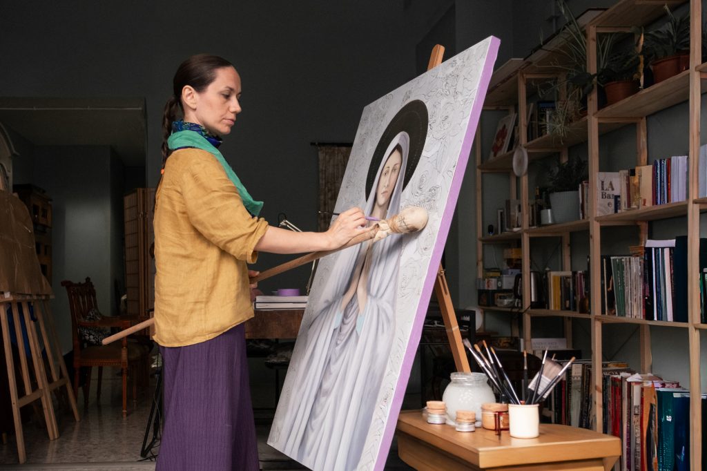 I giorni 4 e 5 ottobre 2025 a Roma presso il Collegio di S. Isidoro a Capo le Case – via degli Artisti, Rione Ludovisi – l’artista Italo Inglese Serena Ingham celebra con una mostra il Cantico delle Creature, Dopo aver realizzato importanti opere di Arte Sacra come ad esempio la copia della Madonna della Neve commissionata per la famosa processione di Rocca Priora o l’Icona del Battesimo di Gesù in esposizione permanente presso la Chiesa di San Silvestro in Capite dopo aver partecipato nel mese di settembre con una sua Opera Sacra alla Mostra per la Pace a Mosca, realizza una mostra personale dedicata all’ottavo centenario del Cantico delle Creature, composto dal Patrono d’Italia San Francesco d’Assisi.