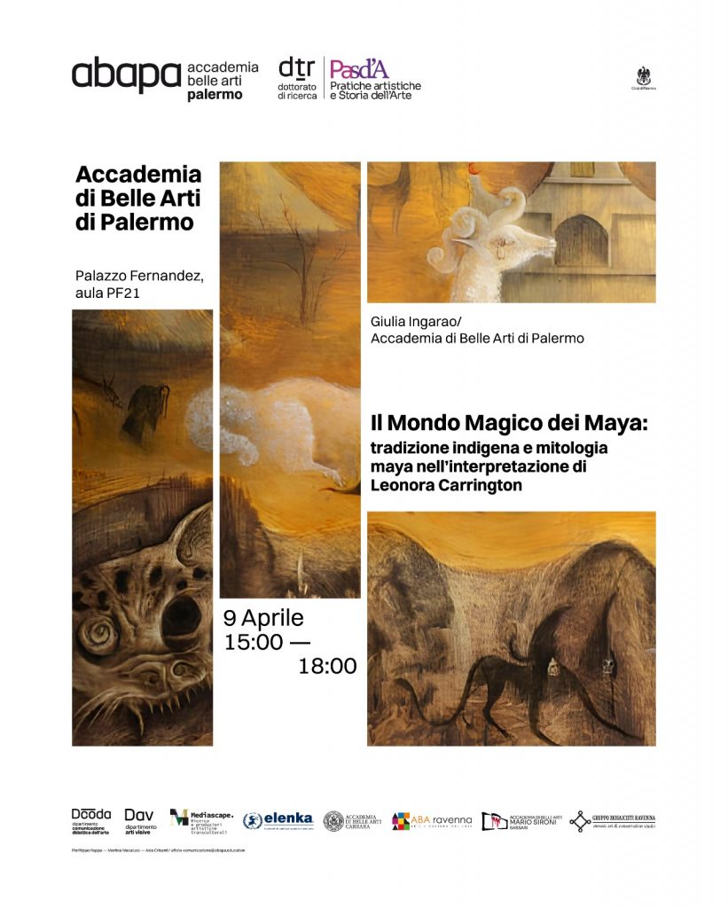 dell’arte Contemporanea presso ABA Palermo, è inserita tra i molteplici appuntamenti formativi previsti all’interno del Dottorato di ricerca in Pratiche Artistiche e Storia dell’Arte dell’Accademia di Belle Arti di Palermo.