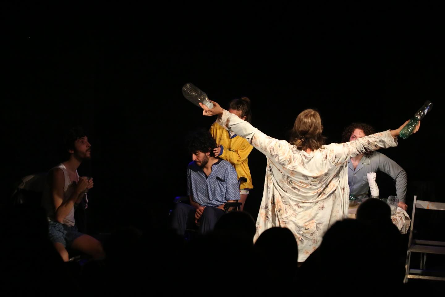 Sei ragazzi convivono da anni, oziando, in un appartamento ridotto ad una discarica; unico diversivo, un gioco che organizzano ogni notte finché, un evento inaspettato, rompe la routine della casa. “Lo spettacolo è nato durante la Pandemia – dice l’autore – Quel periodo di immobilità ha fornito lo spunto drammaturgico per raccontare ciò che spesso fingiamo di non vedere nelle nostre vita, da ben prima: il vuoto che ci circonda mentre restiamo chiusi dentro piccole case, abitudini, ipocrisie”. Niente smuove davvero i personaggi, il cui unico scopo è trascorrere i giorni nel modo più strano possibile, reiterando una contemporaneità senza spiragli, nella quale anche il pubblico si identifica. Ingabbiati dentro ragioni indotte e in una confortante passività, ci illudiamo di vivere a nostro piacimento mentre il contatto con l’esterno, in scena come nella realtà, è ridotto a due soli elementi: la finestra, simbolo del sogno e gli schermi, oggetto sacro che ci accompagna alla disfatta. Il testo, brillante in superficie, imita il naturalismo della vita, come i pigri e inconcludenti discorsi tra coinquilini, subdolamente suggeriti e passivamente assorbiti dai media, che nascondono il senso di incatenamento ma non trattengono angosciose domane: “Di chi è la colpa?”. “Perché non usciamo?”.