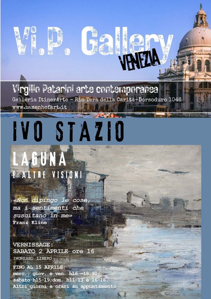 Sabato 2 aprile 2022 alle ore 16 si inaugura in Rio Terà de la Carità - Dorsoduro 1046 (accanto alle Gallerie dell’Accademia) la mostra personale del pittore bolognese Ivo Stazio intitolata “Laguna e altre visioni”, la seconda personale dell’anno del ricco programma della stagione targata “Vi.P. Gallery- Virgilio Patarini Arte Contemporanea” della Galleria ItinerArte a Venezia.