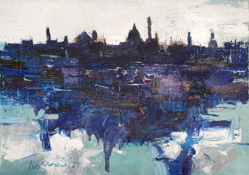 ….“scorrono le immagini lungo la strada, si alternano grandi campiture, cieli aperti, colline tappezzate e poi luci e ombre su quel fiume. E ancora acque, dal mare fino al più piccolo stagno dove l’aria è stemperata e intrisa di sapore antico fino arrivare alla città: vedo già in lontananza quella cupola troneggiare e il fumo bianco di quelle fabbriche che si staglia nel cielo grigio.