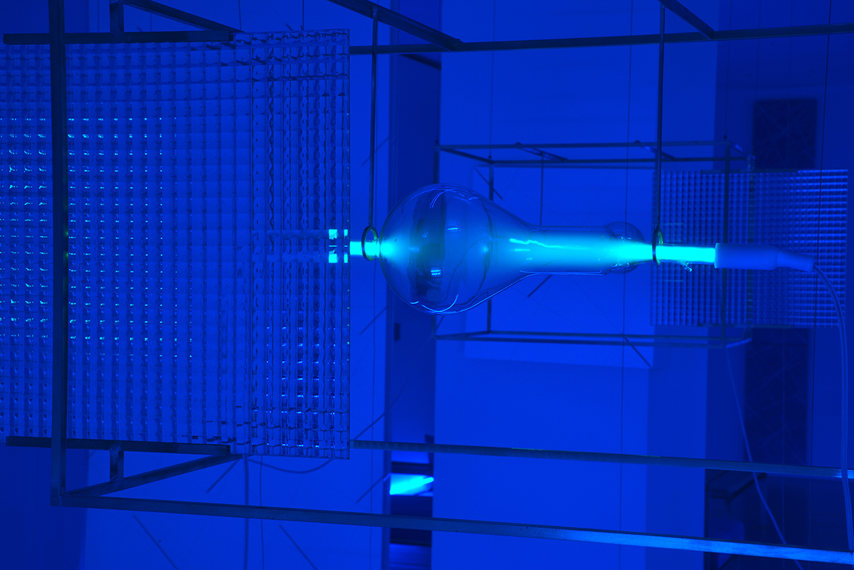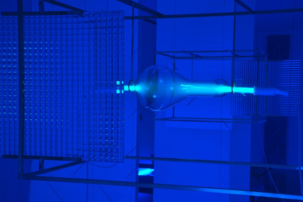 La ricerca di Toussaint si sviluppa tra arte e design, espressioni distinte ma intimamente connesse da un pensiero che giustappone libertà creativa e funzionalità, poesia e razionalità. Su queste basi il suo lavoro artistico, che si muove nell’ambito rigoroso della geometria e vive della composizione di segmenti (e, a volte, di archi) fatti ora di materia ora di puri segni di luce, prende forza da una vera immersione nello spazio, che ne diventa parte integrante in forza dell’utilizzo di luci neon blu che generano una intrigante atmosfera. Apprezzabile appare anche il superamento della staticità della geometria con un gioco di simmetrie e asimmetrie dalle felici valenze dinamiche.