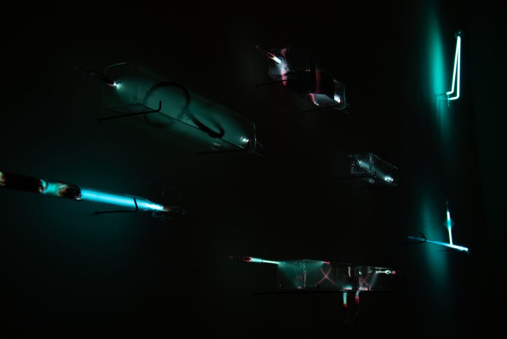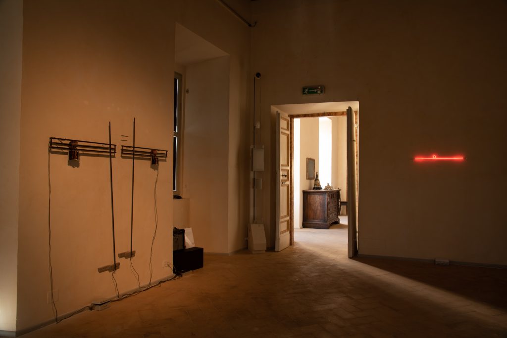 Luce, corrente, onde sonore, vibrazioni, temperatura sono le variabili tramite cui l’artista approfondisce i nessi di azione e reazione alla base delle sue opere, insistendo sulle conseguenti modalità di relazione, comprendendone le anomalie e impostando, sempre, un legame simbiotico con lo spazio circostante. Angelino, così, articola un linguaggio in grado di valutare gli archetipi dei fenomeni naturali, sondandone le regole costitutive irriducibili. Nell’ambito della sua ricerca, caratterizzata dall’adozione di procedimenti che – in parte – esulano dal suo stesso controllo, Resistenze è assimilabile a un unico intervento interdisciplinare, interdetto fra arte e scienza. Dislocato in diverse aree del Piano Nobile, si tratta di un progetto specificatamente concepito per configurarsi all'interno di ambienti ben precisi, idealmente attraversati da una medesima installazione.