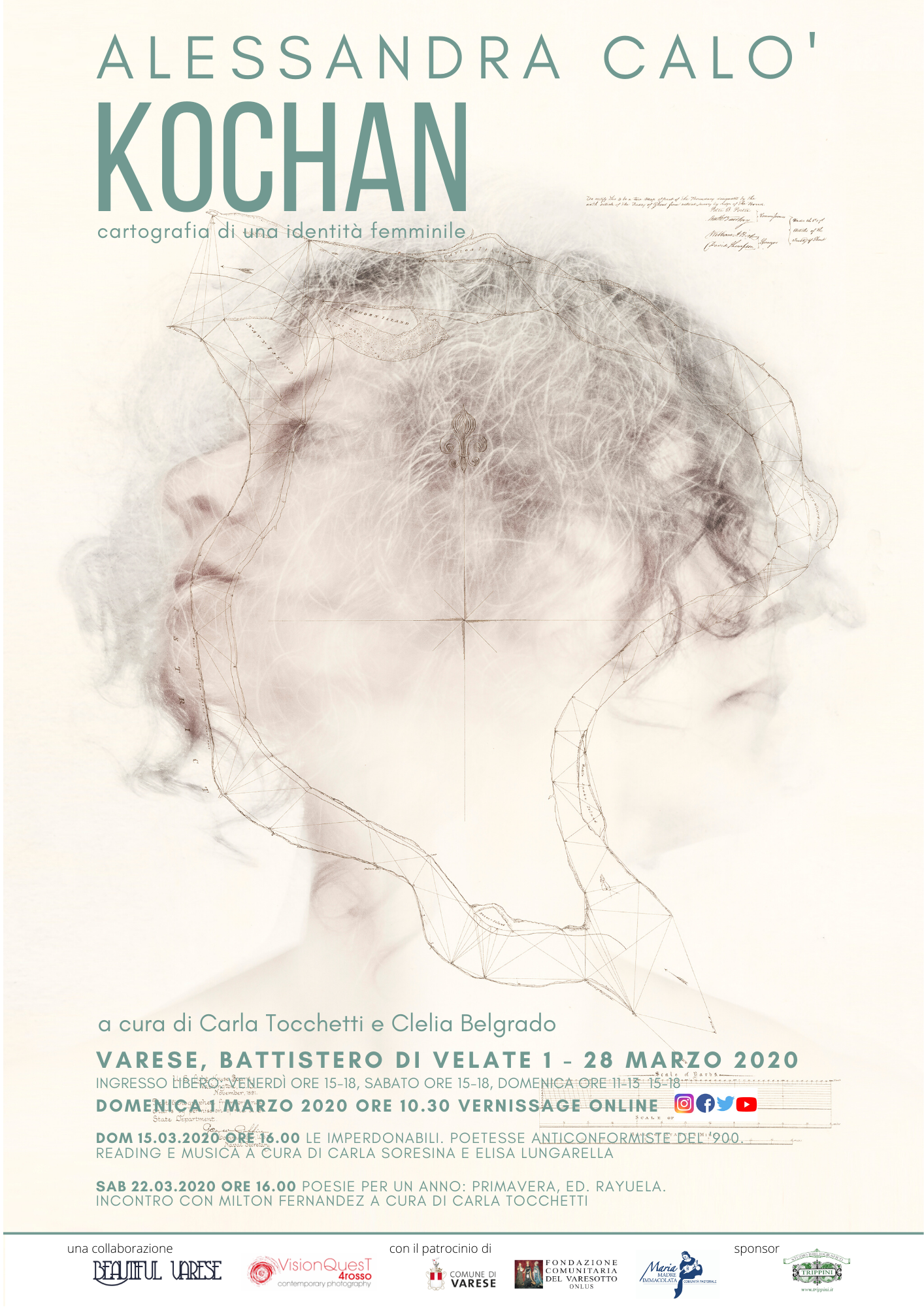 Tappa varesina di un prestigioso tour europeo, il 1 marzo 2020 arriva a Varese, per inaugurare la stagione 2020 al Battistero di Velate, “Kochan. Cartografia di una identità femminile” di Alessandra Calò. La collezione di opere fine art, curata da Carla Tocchetti e Clelia Belgrado, racconta un viaggio autobiografico di ricerca interiore realizzato attraverso doppie esposizioni fotografiche di mappe geografiche d’archivio della New York Public Library. “Con il lavoro di questa talentuosa fotografa emiliana vogliamo celebrare, nel mese dedicato alla Donna, l’intensità e la delicatezza con cui ogni donna si afferma in modo unico e particolare. Al di là dei generi e delle etichette, è la personalità che conta: nel caso delle Donne, però, dobbiamo lottare ancora con i tanti stereotipi femminili che la società ogni giorno ci presenta”, afferma Carla Tocchetti, presidente dell’ Associazione Beautiful Varese, organizzatrice della programmazione nell’oratorio seicentesco. “Attraverso l’autoscatto, l’Artista non punta il suo sguardo altrove ma si concentra sul ruolo da attribuire al proprio corpo, paragonandolo ad un territorio da esplorare. La ricerca di se stessi è un viaggio che si compie senza precise coordinate, in un territorio a volte sconosciuto, che cerca e trova spazio, rivendicando la possibilità di un modo diverso e consapevole di stare al mondo”, commenta la co-curatrice genovese Clelia Belgrado. Il progetto Kochan di Alessandra Calò è stato selezionato e presentato in anteprima per Circulation(s) Festival de la jeune photographie européenne a Parigi, dove ha vinto il Tribew Editorial Prize e il Foto Masterclass Prize, attribuiti dalla giuria composta da Marta Gili, Flore, Cécile Schall, Eric Karsenty, Brigitte Patient e Sylvie Hugues; la collezione inoltre è stata esposta all’Istituto Italiano di Cultura di Madrid nell’ambito della XIV Giornata del Contemporaneo 2018 con la collaborazione di AMACI Associazione Musei d’Arte Contemporanea Italiani, e alla Galerie du Forum Meyrin – di Ginevra nella collettiva La Fabrique du Monde. A Varese la mostra è patrocinata dal Comune di Varese e dalla Fondazione Comunitaria del Varesotto, inoltre grazie allo sponsor Studio Bibliografico Trippini saranno esposti in mostra alcuni antichi globi-mappamondo da scrittoio e preziose carte geografiche lombarde del ‘600, ‘700 e ‘800.Artista e fotografa, Alessandra Calò sperimenta fin dall’inizio della sua carriera l’uso di nuovi linguaggi che le permettono di approfondire i temi legati alla memoria, all’identità e al linguaggio stesso della fotografia. Pratica dominante nel suo lavoro è il recupero e la reinterpretazione di materiali d’archivio attraverso i quali l’artista non intende attuare una rievocazione nostalgica del passato ma proporre una nuova visione della realtà. I suoi lavori rivelano la passione per le antiche tecniche di stampa, che realizza personalmente dando vita a vere e proprie installazioni. Le sue opere e i suoi libri d’artista fanno parte di importanti collezioni - pubbliche e private - e sono pubblicate su riviste di settore. Nel 2019 è menzione speciale al Premio Nazionale Marco Bastianelli con il libro Secret Garden (edito da Danilo Montanari con testo introduttivo di Erik Kessels); nel 2018 vince il premio editoriale Tribew nell’ambito del festival Circulation(s); nel 2017 riceve la menzione d’onore da IPA International Photographic Award, nel 2016 vince il Combat Prize per la sezione scultura e installazione, nel 2014 vince l’edizione di Fotografia Europea con il progetto Secret Garden. Tra le sue ultime esposizioni: Reconte-moi une histoire (2019), Istituto Italiano di Cultura, Parigi; Memorie. L’essere umano tra evocazione e ricordo (2019), Museo Civico Palazzo della Penna, Perugia; El jardín secreto (2018), Istituto Italiano di Cultura, Madrid); La fabrique du monde (2018), Galerie du Forum, Ginevra; The family of no man (2018), Voies Off, Arles; Kochan (2018), Galerie LeCentquatre, Parigi.Due sono gli eventi speciali previsti nel programma: domenica 15 marzo alle ore 16 un evento di reading e musica impreziosirà il programma al Battistero di Velate: Carla Soresina e Elisa Lungarella, docenti in materie letterarie dei licei Classico Cairoli di Varese e Stein di Gavirate presenteranno la performance “Le imperdonabili”, selezione di poesie di valenti autrici del primo Novecento che hanno vissuto al di fuori degli schemi. Sabato 21 marzo alle ore 16 Milton Fernandez, poeta, scrittore, e direttore artistico del Festival della Letteratura di Milano, presenta Poesie per un anno: Primavera, una novità editoriale di Rayuela edizioni (incontro a cura di Carla Tocchetti).“Promuovere l’arte ai tempi del coronavirus è una scelta ben precisa: la Cultura risponde all’emergenza con flessibilità, visione e coraggio, pur rispettando le regole. E’ importante dare un segnale che il mondo non si ferma” dice la curatrice Carla Tocchetti. “In ossequio alle ordinanze sulla sicurezza emanate dalla Regione in tema di coronavirus, il Battistero di Velate sarà chiuso, in alertnativa proporremo un vernissage online domenica 1 marzo dalle ore 10.30. Sarà possibile collegarsi su Facebook, Instagram, Youtube e Twitter per vedere le interviste all’Artista e la mostra allestita nel Battistero. La mostra aprirà poi fisicamente dal 7 marzo, se non vi saranno altre ordinanze, e resterà aperta fino al 28 marzo: le aperture sono previste venerdì sabato e domenica dalle 15 alle 18 e la domenica mattina dalle 11 alle 13, con ingresso libero. Gli appassionati e i collezionisti possono scrivere a battisterodivelate@gmail.com per visite private su appuntamento.