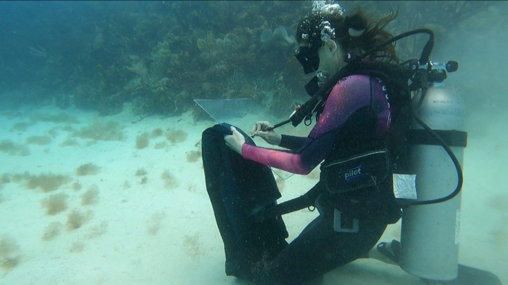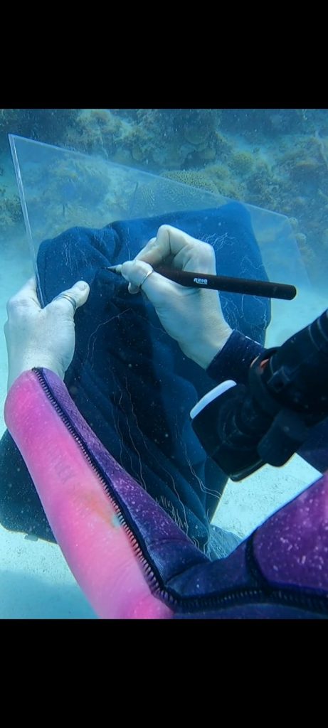 Krillantix (Antonella Magliozzi), realizza le sue incisioni lavorando direttamente in immersione a 12 metri