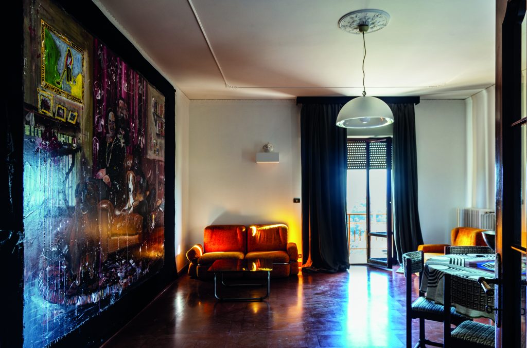 Anche Adriano Rupelli strinse un forte rapporto di stima con l’artista fermano e negli ultimi anni della sua vita si dedicò sempre più alla raccolta delle sue opere. Durante l’evento speciale di sabato tutta la sua collezione sarà visibile nell’appartamento perfettamente conservato in stile anni ’70, in un’atmosfera singolare dove sfumano i confini tra fantasia e realtà, tra vita immaginata e vita autentica, tanto che si avrà la sensazione di entrare in un set cinematografico o in un boudoir privato. Rupelli ci trascorse anni intensi prima di affrontare il suo ultimo viaggio in Messico per incontrare lo sciamano degli Zapotechi, gli indigeni di Oaxaca, e realizzare così il suo ennesimo sogno, un progetto cinematografico italo-messicano. Perse la vita negli altipiani centrali del Chiapas, rimanendo coinvolto in un conflitto tra alcuni discendenti dei Maya e le autorità statali, in una fine tragica ma allo stesso tempo carica di un alone spettacolare e quasi cinematografico. Nel suo lascito, curato dalla Fundación Adriano Rupelli costituita in suo onore a Città del Messico nello stesso anno della sua morte (2004), era compreso anche l’appartamento fermano, rifugio discreto per le occasionali fughe amorose dello scenografo ma anche sua grande fonte di ispirazione artistica.