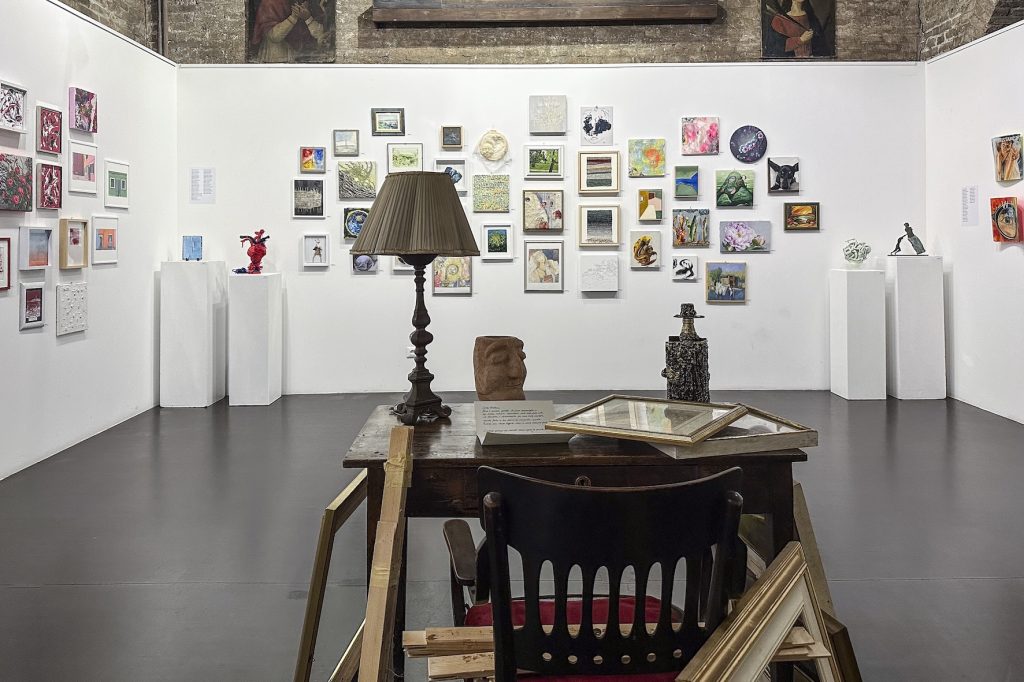 La mostra è concepita come una stanza-santuario, una camera segreta che racchiude l’anima e l’universo immaginario del collezionista. Al suo interno, piccole opere e oggetti d’arte sono disposti in modo apparentemente casuale, saturando lo sguardo e dando vita a una narrazione aperta e frammentaria. Il visitatore è così chiamato a immergersi in questa atmosfera sospesa, lasciandosi guidare dal caos e dal dettaglio per scoprire nuove connessioni e significati.