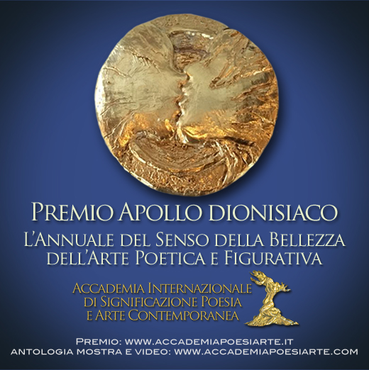 L'Accademia Internazionale di Significazione Poesia e Arte Contemporanea, polo no profit di libera creazione, ricerca e significazione del linguaggio poetico e artistico, in convenzione formativa con l’Università degli Studi di Roma Tre, con il patrocinio della Regione Lazio, di Roma Capitale e dell’Istituto Italiano di Cultura di New York, bandisce la VII Edizione 2020 del Premio Internazionale di Poesia e Arte Contemporanea Apollo dionisiaco, senza scopo di lucro.