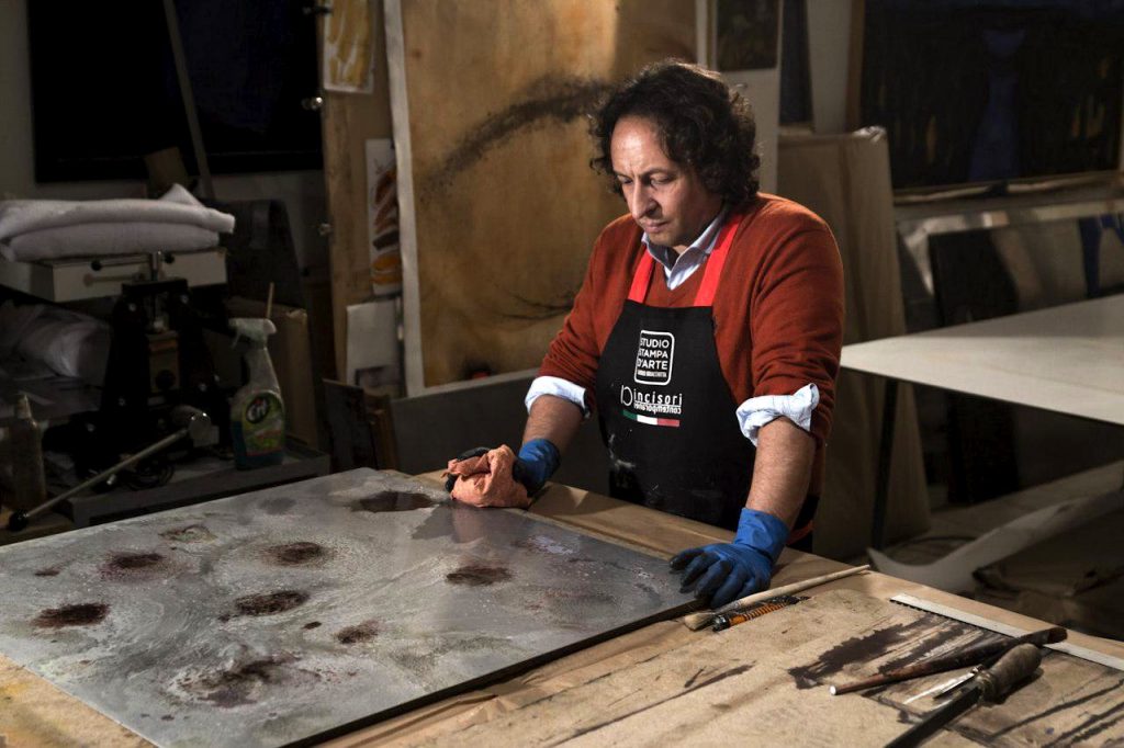 "L'archetipo ...il segno" raccoglie una selezione di incisioni per lo più realizzate a carborundum, puntasecca e acido diretto, la maggior parte di grande formato. Tra queste, anche alcuni lavori inediti e opere uniche retouche a floccaggio, tecnica preferita dall'artista. I lavori presentati si inscrivono nei codici del linguaggio poetico che contraddistingue la ricerca artistica di Bracchitta negli ultimi vent'anni.