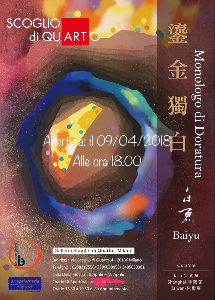La mostra “Monologo di Doratura” del maestro cinese sarà ospitata a Milano all’interno della Galleria Scoglio di Quarto. Un evento in collaborazione con Big Eyes Vision International.