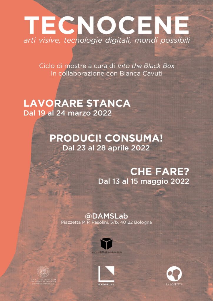 Prende il via a marzo il ciclo di mostre dal titolo Tecnocene, a cura di Into the Black Box in collaborazione con Bianca Cavuti e il centro La Soffitta del Dipartimento delle Arti dell’Università di Bologna.