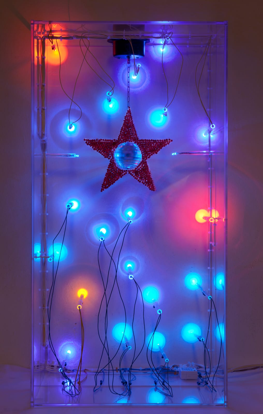 questa occasione due opere realizzate in plexiglas e materia luminosa.