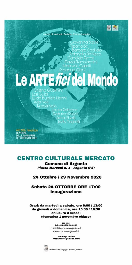 Curata da Marinella Galletti e Cinzia Garbellini, la rassegna che a Palazzo Sacrati Crema, Ferrara, si è conclusa il 16 Ottobre, inaugura il 24 Ottobre 2020 alle ore 17,00 al Centro Culturale Mercato, Comune di Argenta (FE).