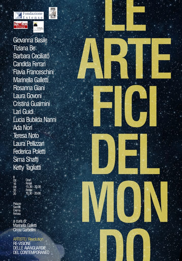 La mostra Le ARTEfici del Mondo si apre con una lettura esplorativa emozionale e stilistica per conoscere-riconoscere, mettere in luce e studiare le contraddistinte valenze linguistiche dell’arte di Giovanna Basile, Tiziana Be, Barbara Ceciliato, Candida Ferrari, Flavia Franceschini, Marinella Galletti, Rosanna Giani, Laura Govoni, Cristina Gualmini, Lari Guidi, Lucia Bubilda Nanni, Ada Nori, Teresa Noto, Laura Pellizzari, Federica Poletti, Sima Shafti, Ketty Tagliatti.