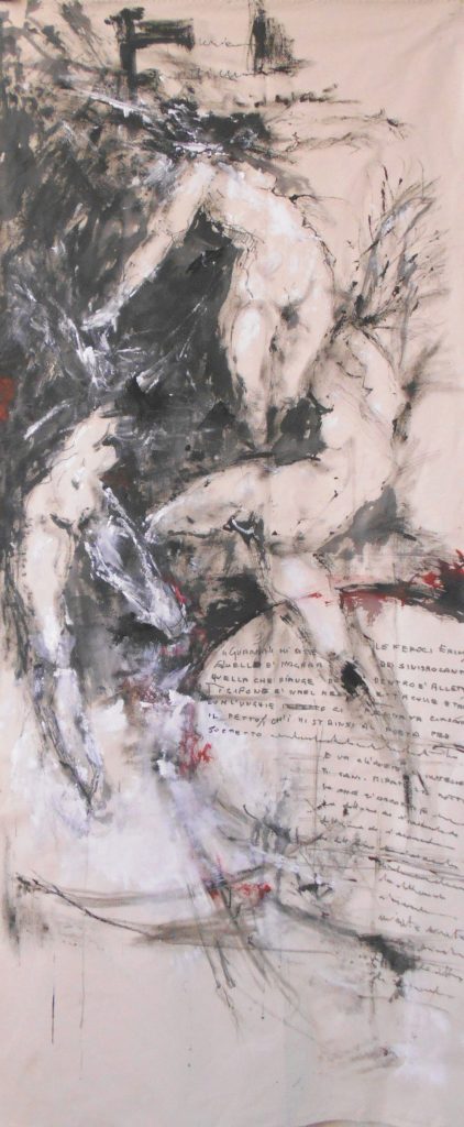 Cleopatra, Medea, Francesca da Rimini, Didone, Eva, Beatrice sono alcune delle figure femminili della Divina Commedia, dipinte da Micozzi con tratti rapidi e colori dal bianco e nero ai rossi accesi, a richiamare l’attualità dell’insegnamento di Dante, di cui quest’anno cade il settecentenario della morte. L’importanza di capire l’errore per giungere alla “redenzione” del cambiamento.