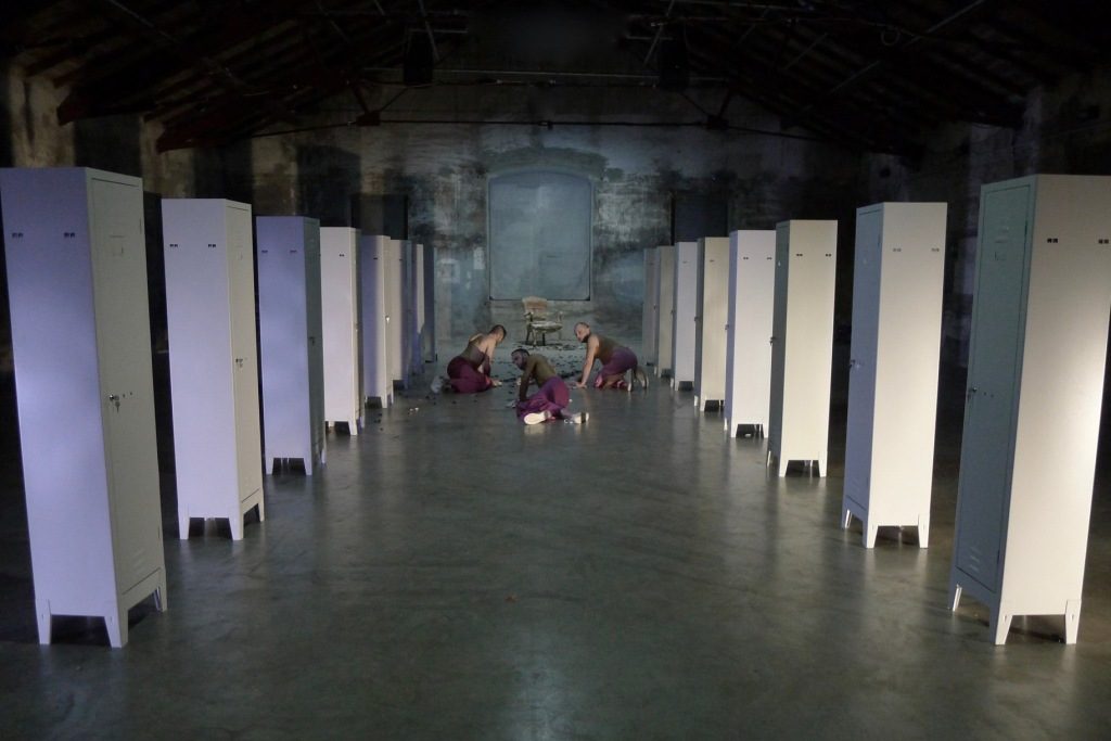 «L’immersione è immediata» le fa eco il critico teatrale Giuseppe Distefano «Sedici armadietti metallici collocati al centro in due lunghe file speculari lasciano un corridoio in mezzo, e, attorno, un largo spazio per permettere di muoverci in libertà ad osservare, ascoltare, vivere anche noi spettatori dentro la scena-lager e campo d’atletica».